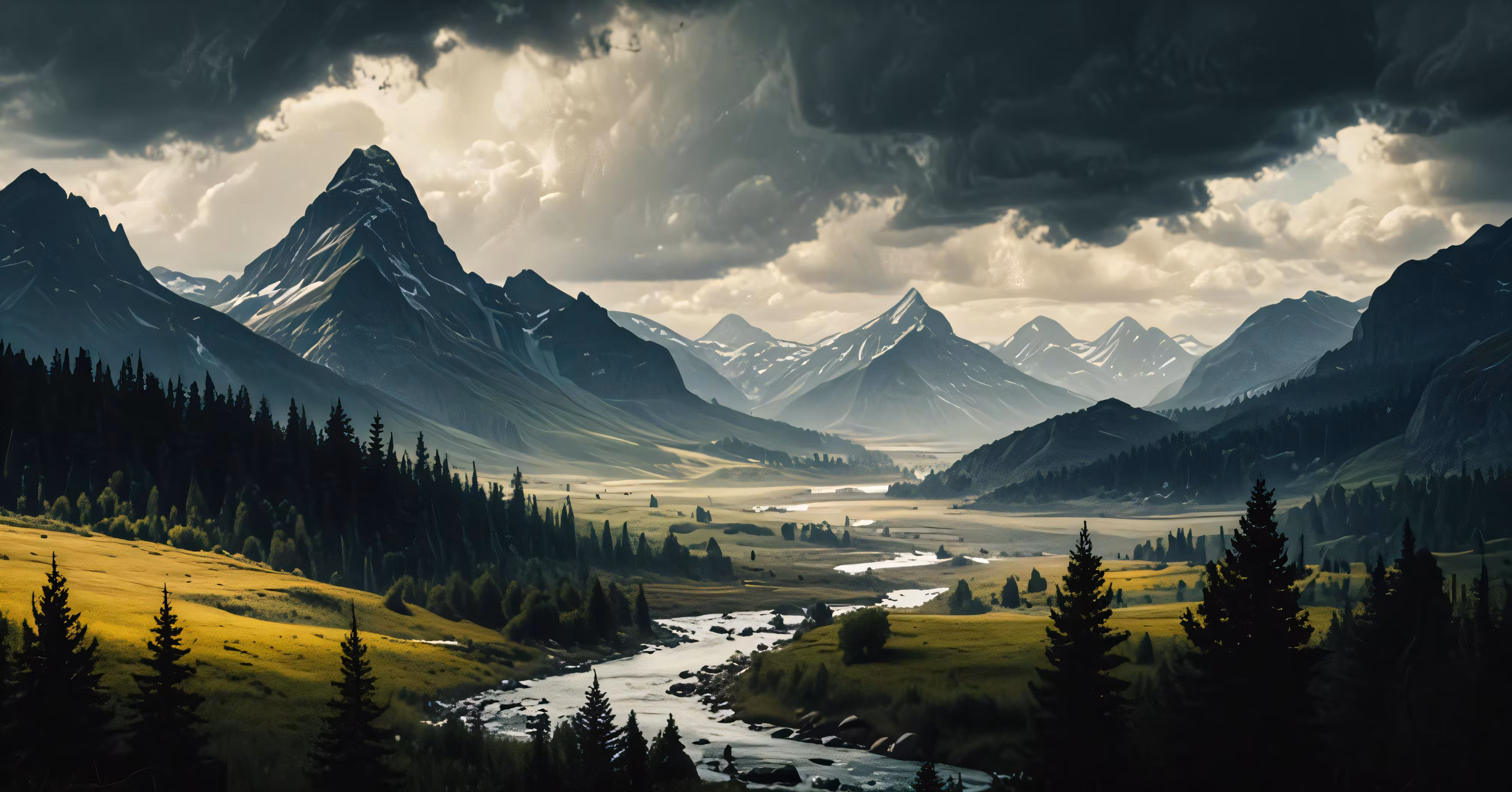 High resolution picture, free to use, there is a beautiful mountain range with a stream flowing through it