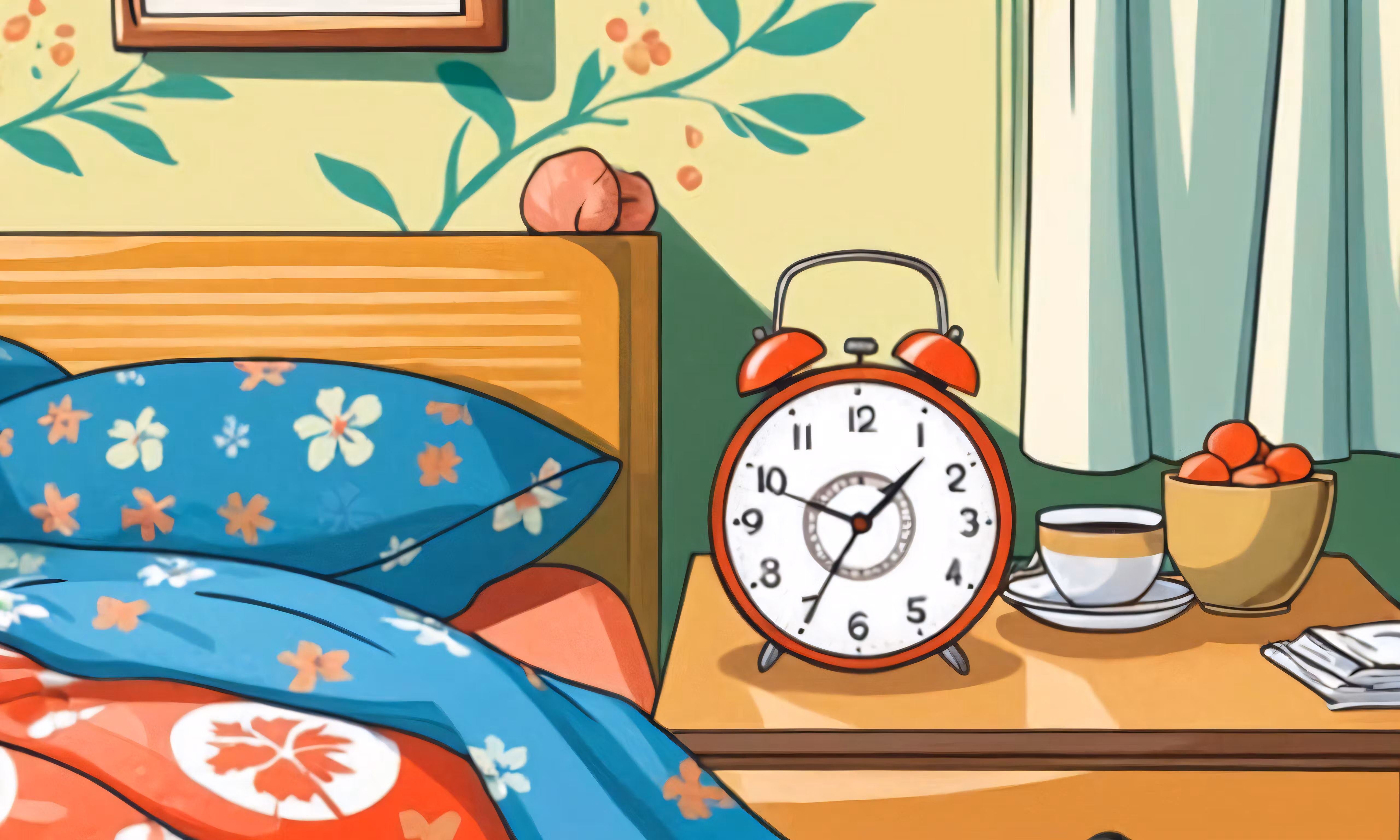 High resolution picture, free to use, there is a clock on the table next to the bed