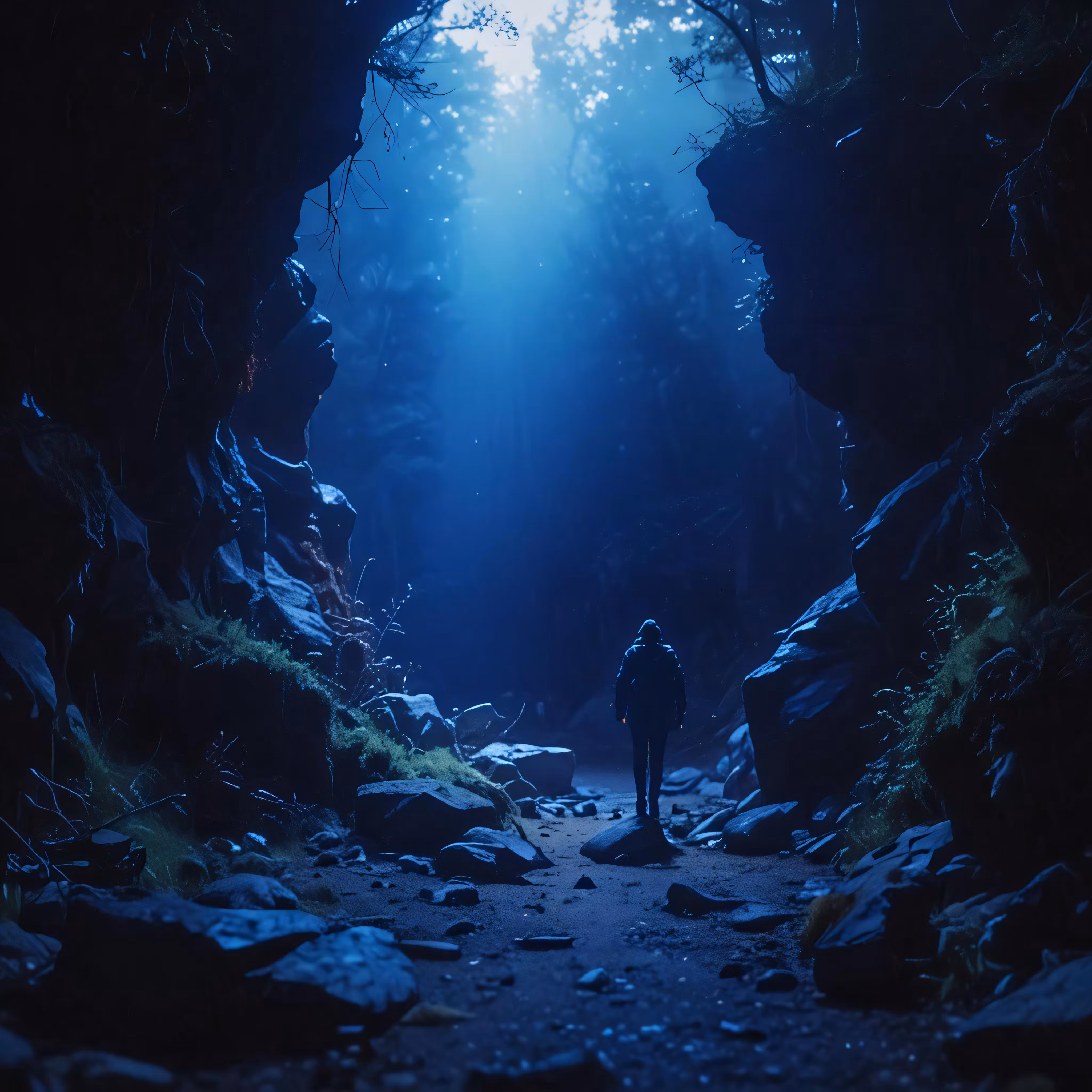 High resolution picture, free to use, there is a person standing on a narrow trail near some rocks