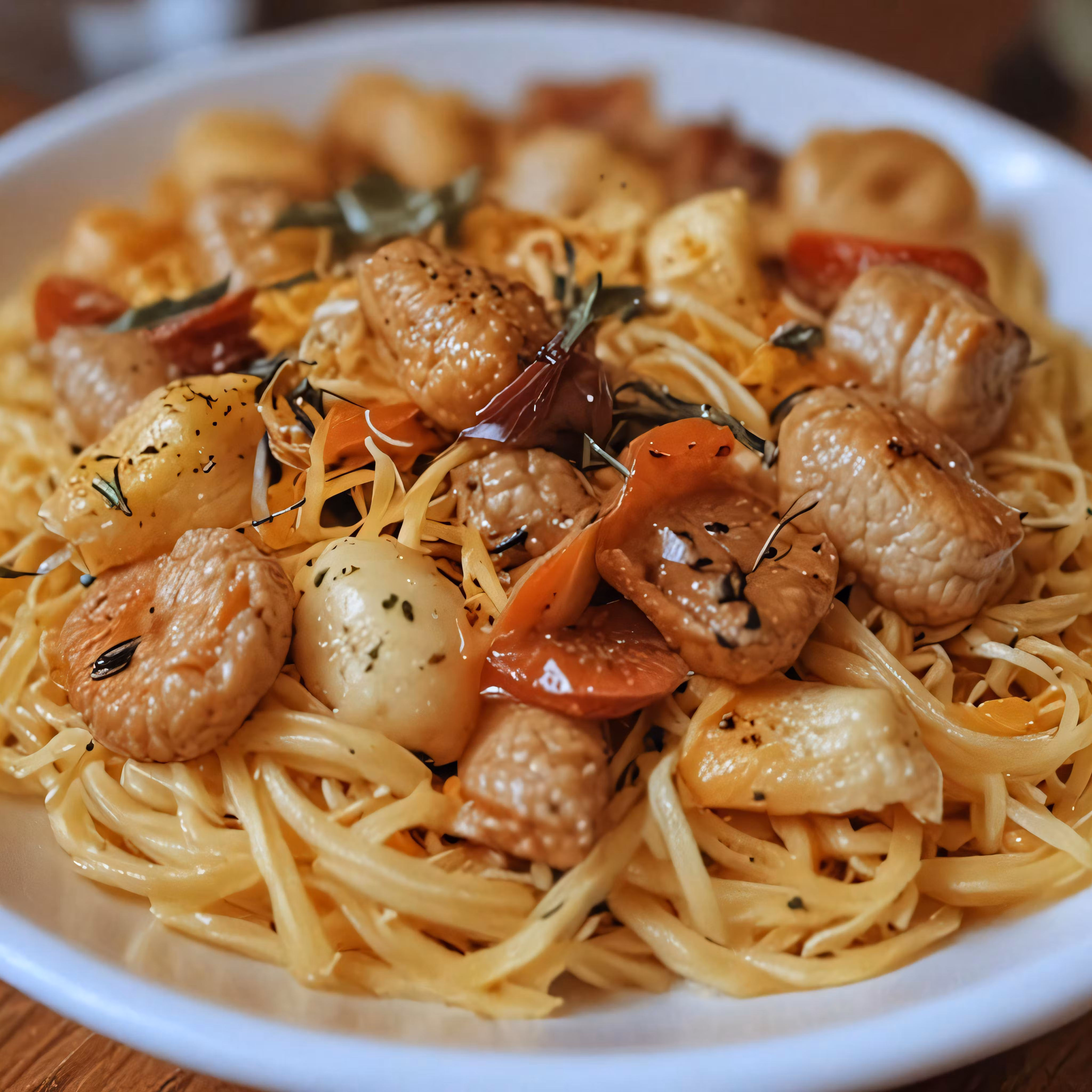 High resolution picture, free to use, there is a plate of pasta and meats on it