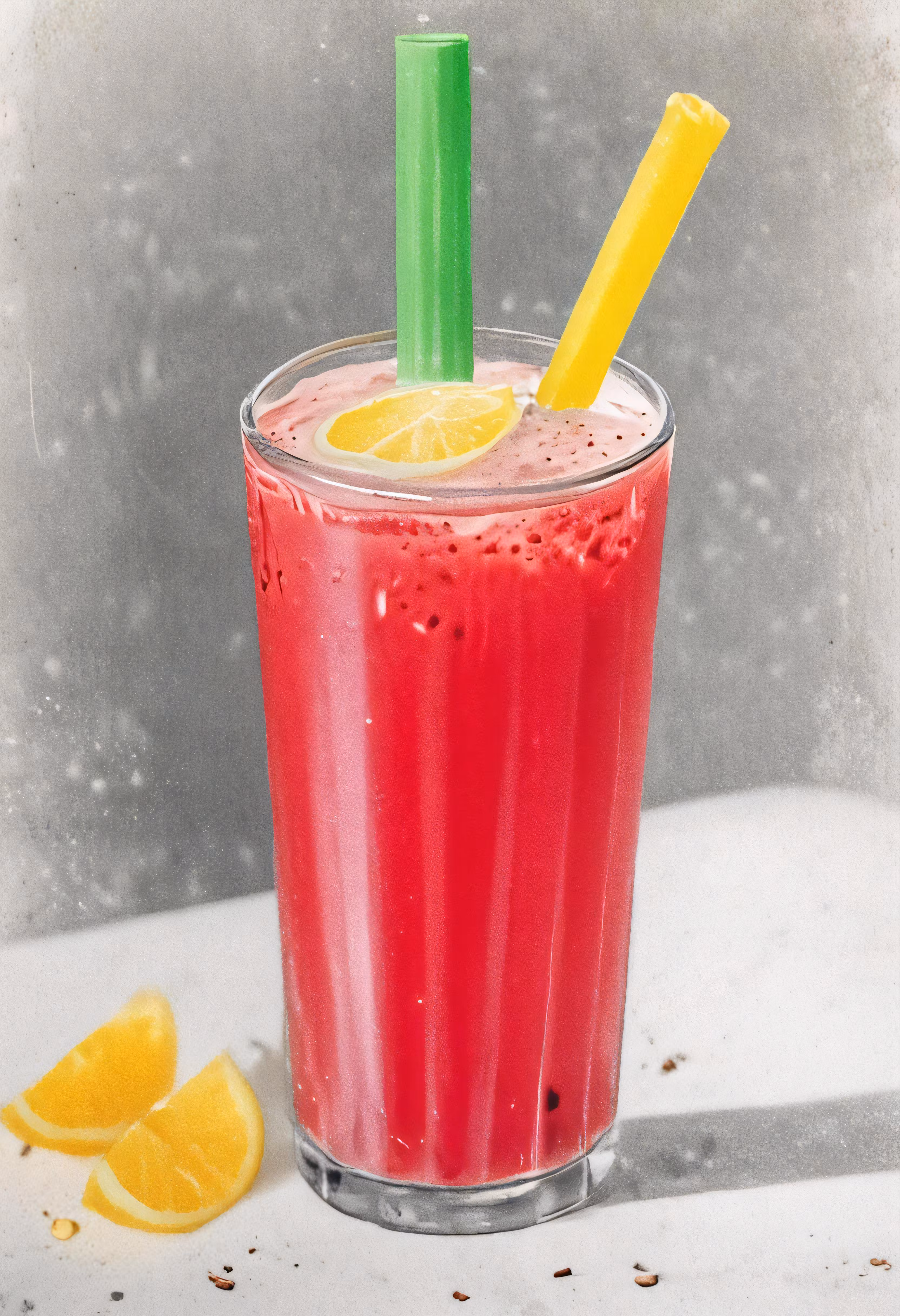 High resolution picture, free to use, there is a red drink with a yellow straw in it