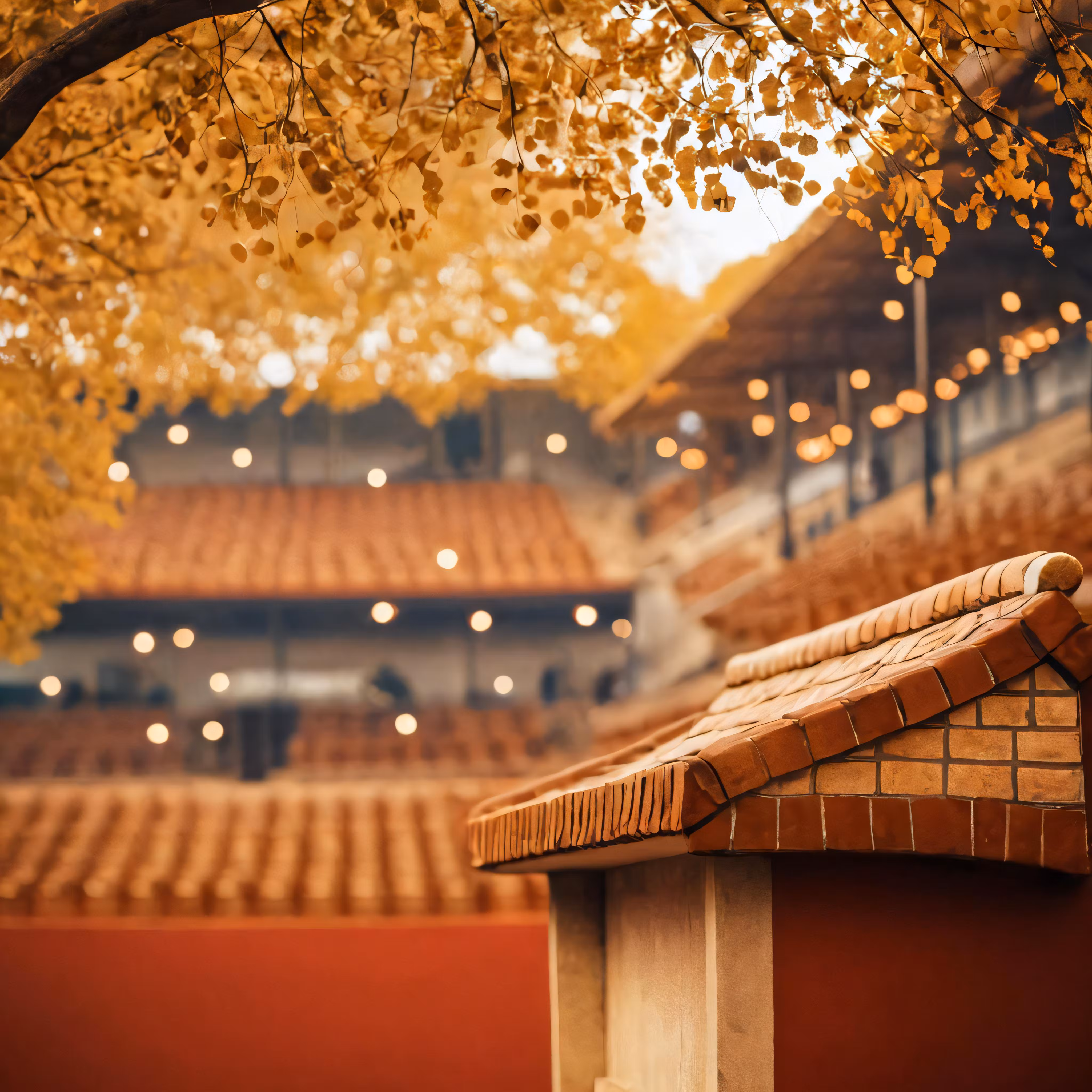 High resolution picture, free to use, there is a roof with light strings strung from it
