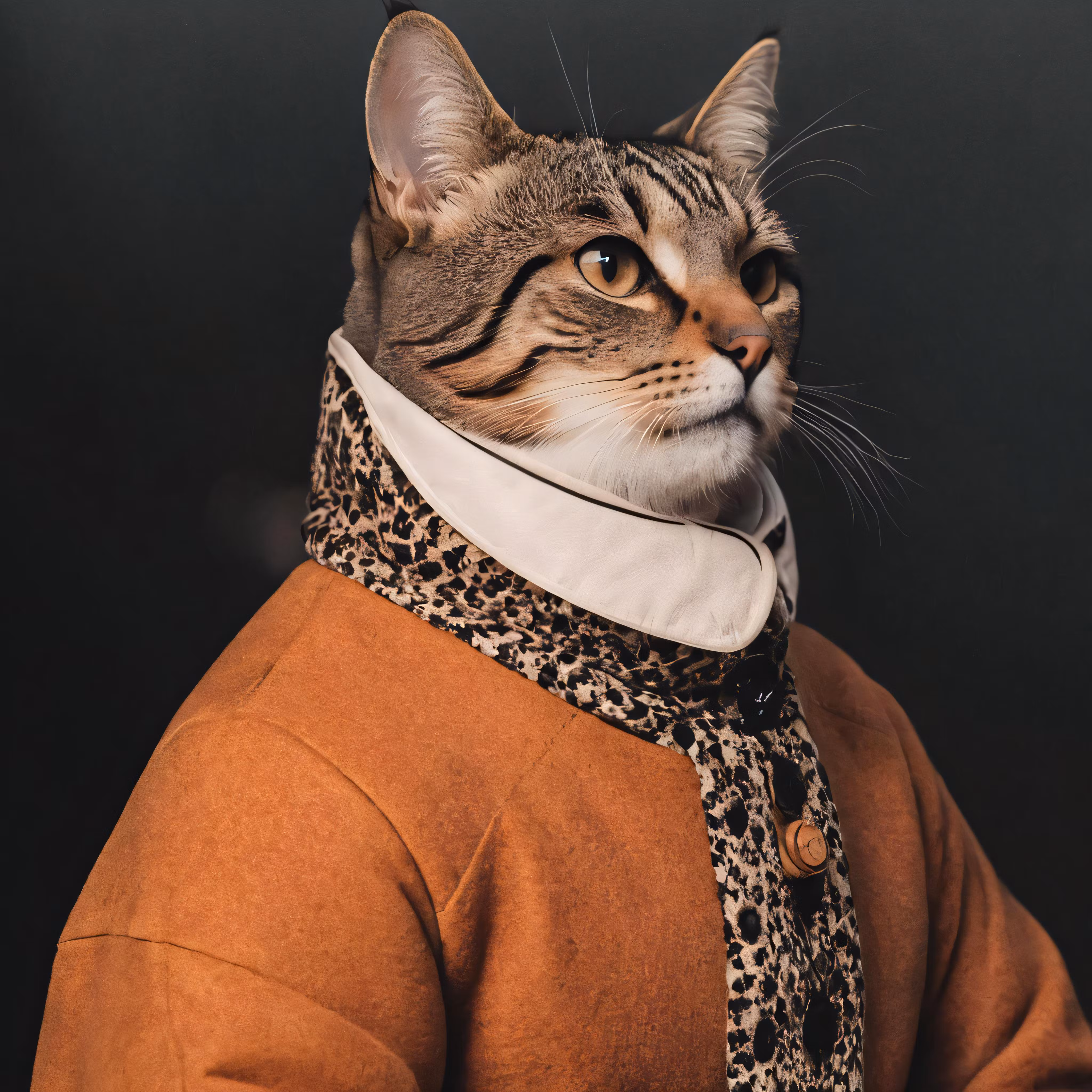 High resolution picture, free to use, there is a small cat wearing a scarf around its neck