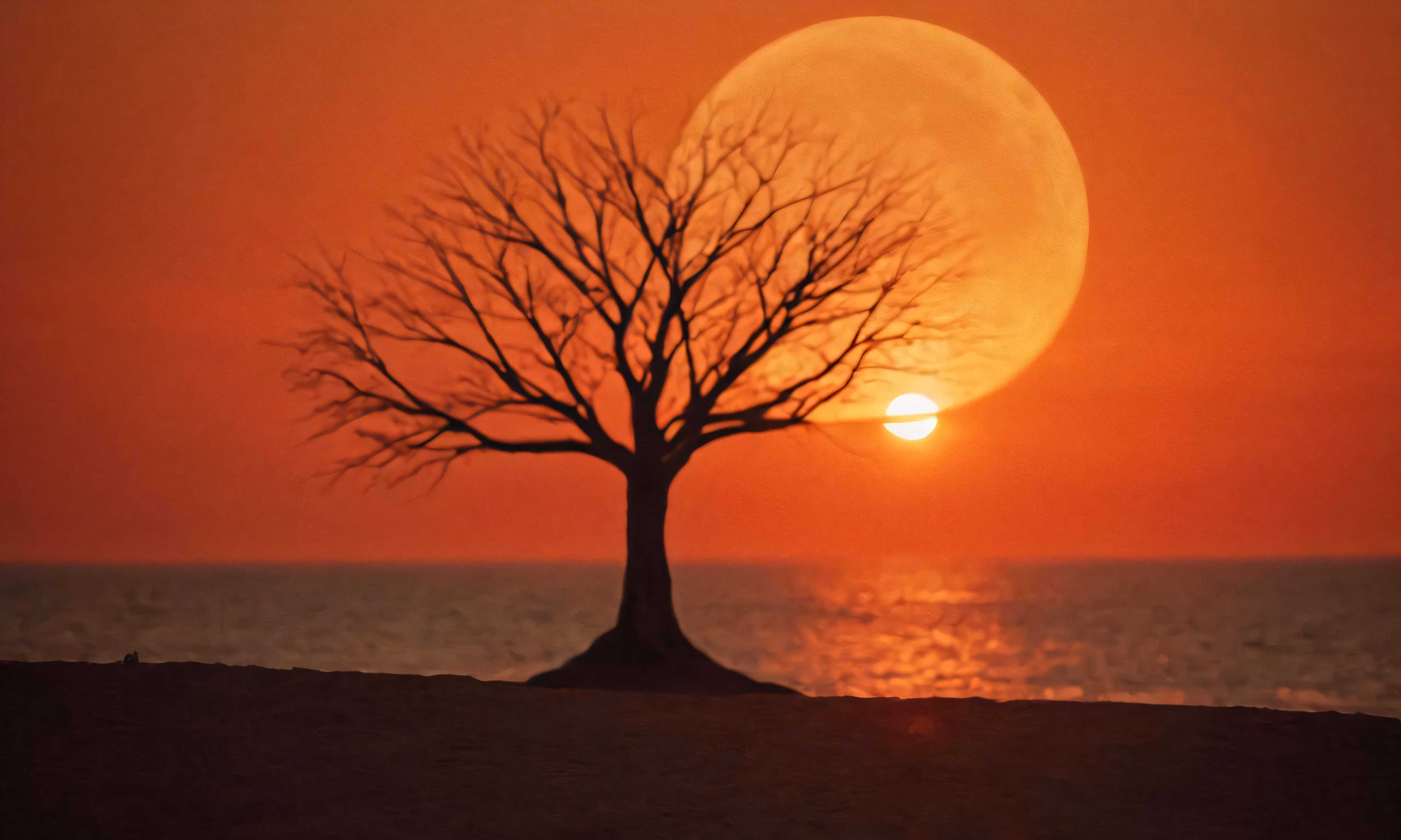 High resolution picture, free to use, there is a tree and the sun in a red sky