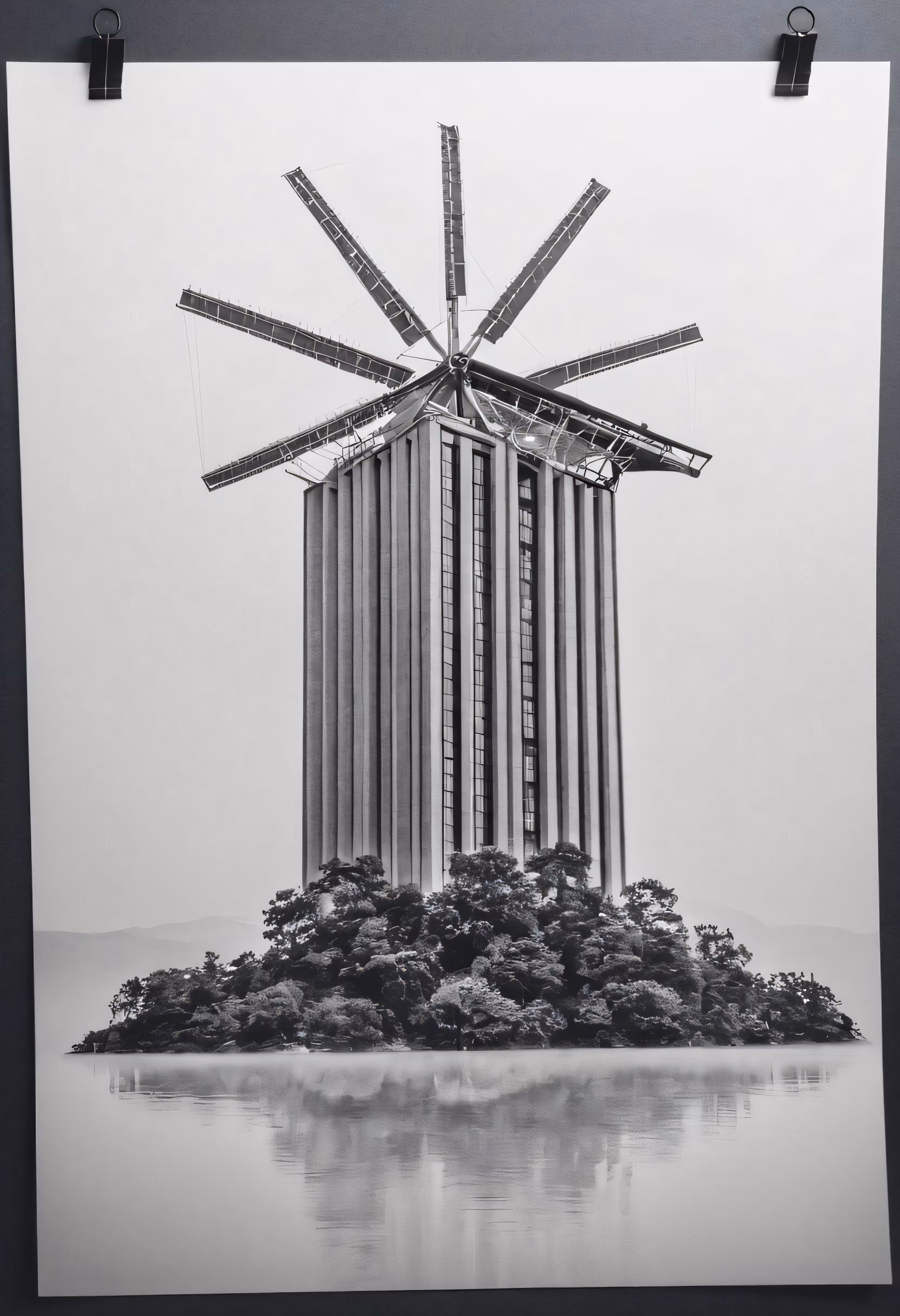 High resolution picture, free to use, there is a very tall windmill that has several long sticks in it
