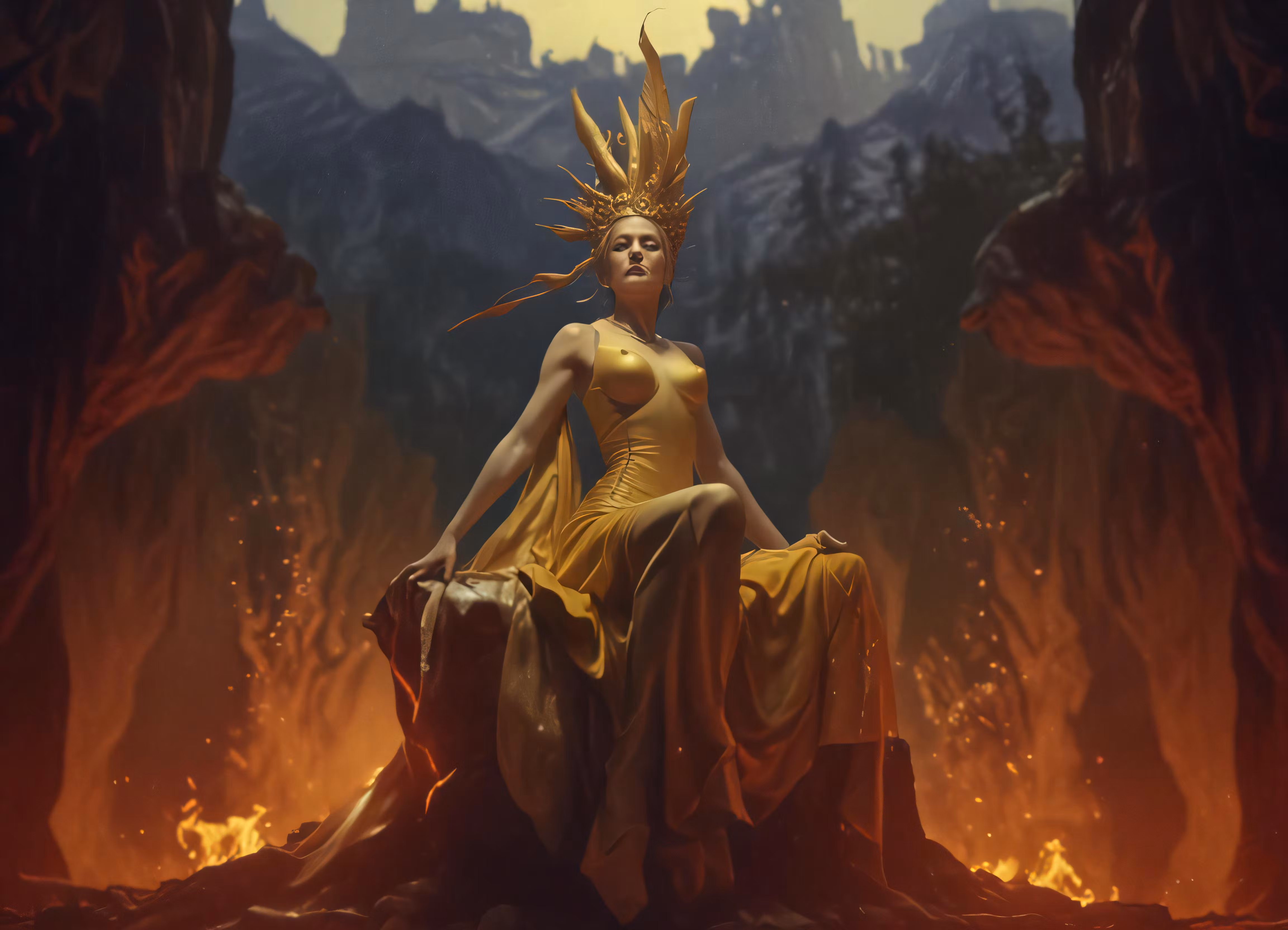 High resolution picture, free to use, there is a woman in a costume and some flames