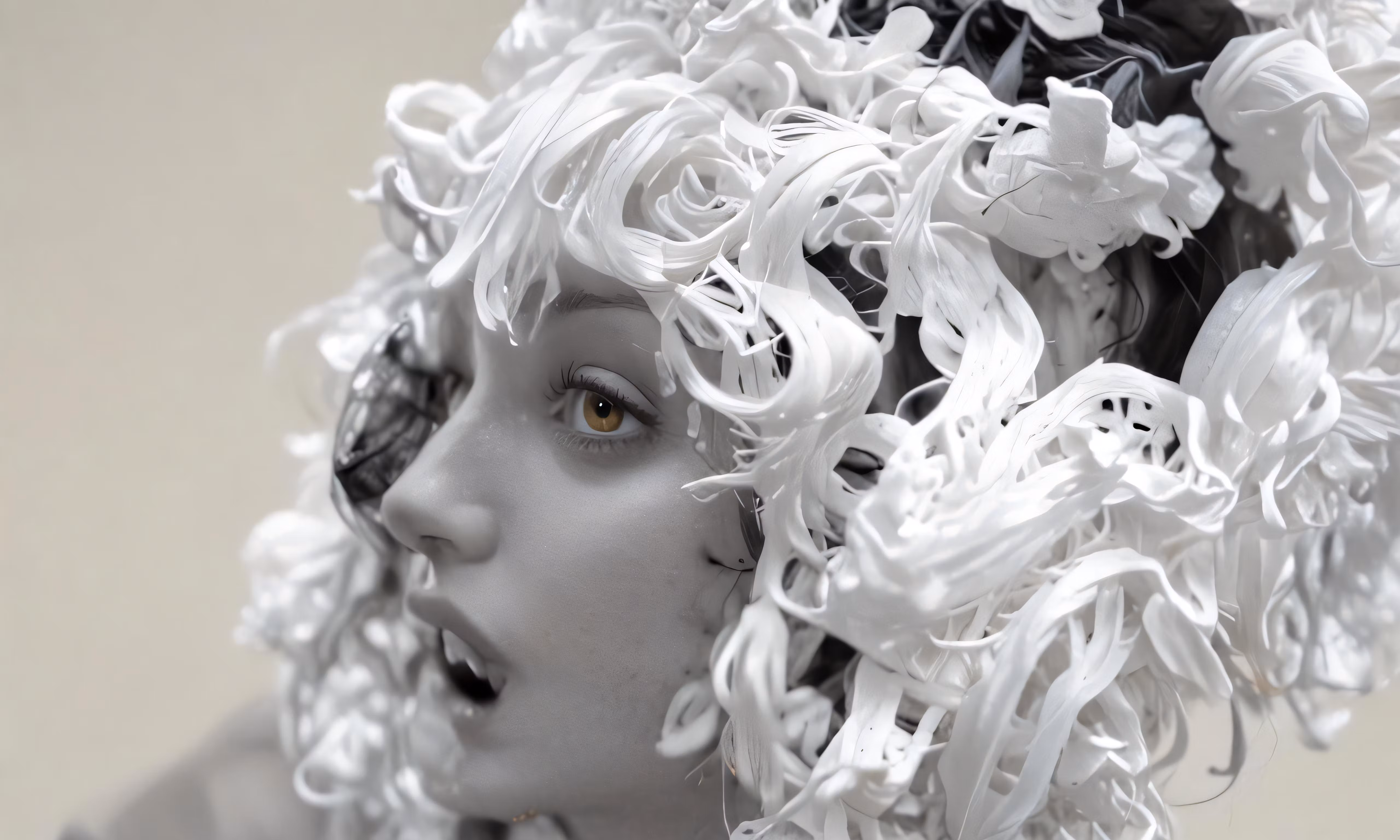 High resolution picture, free to use, there is a woman with her head made out of ribbons