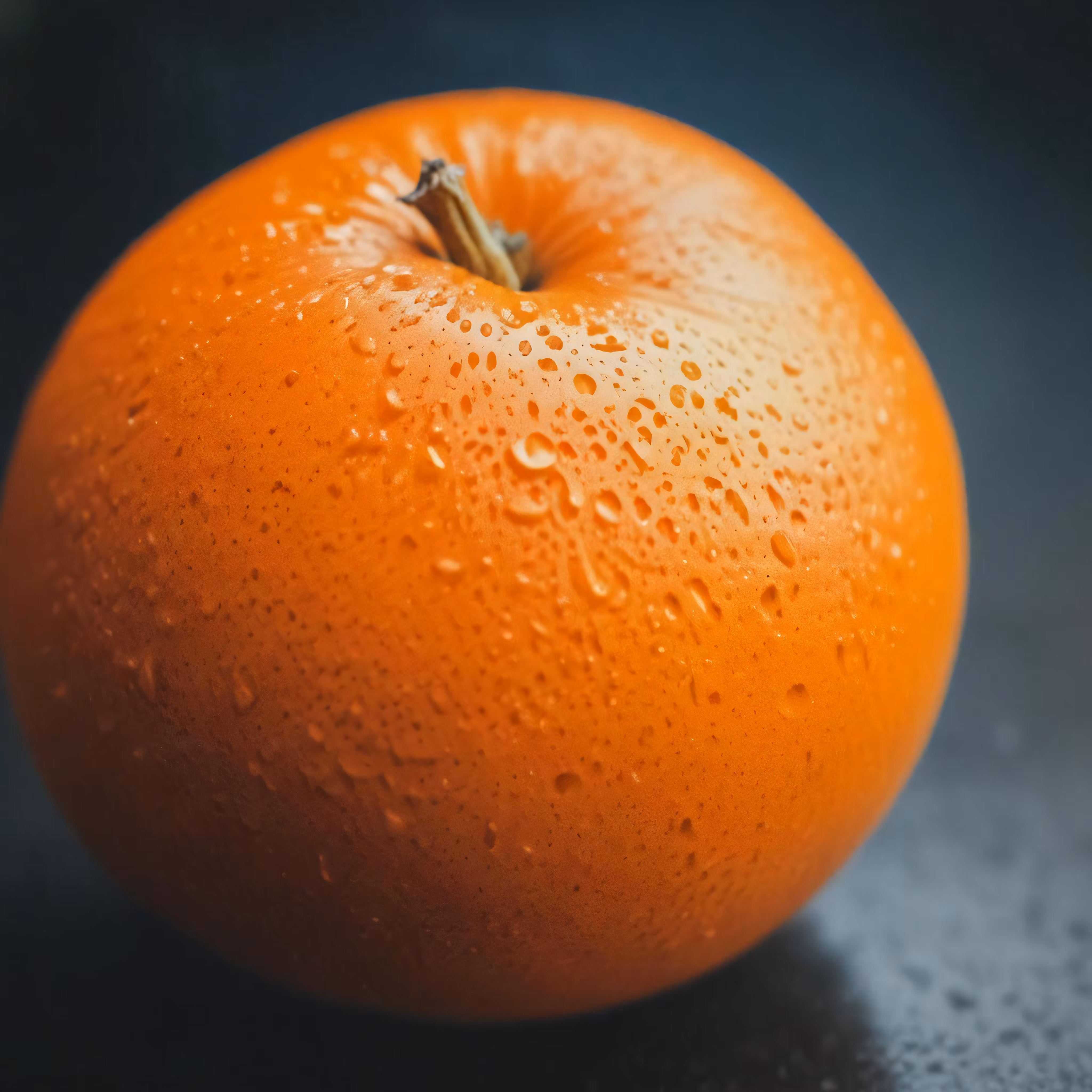 High resolution picture, free to use, there is an orange on the table covered in drops of water