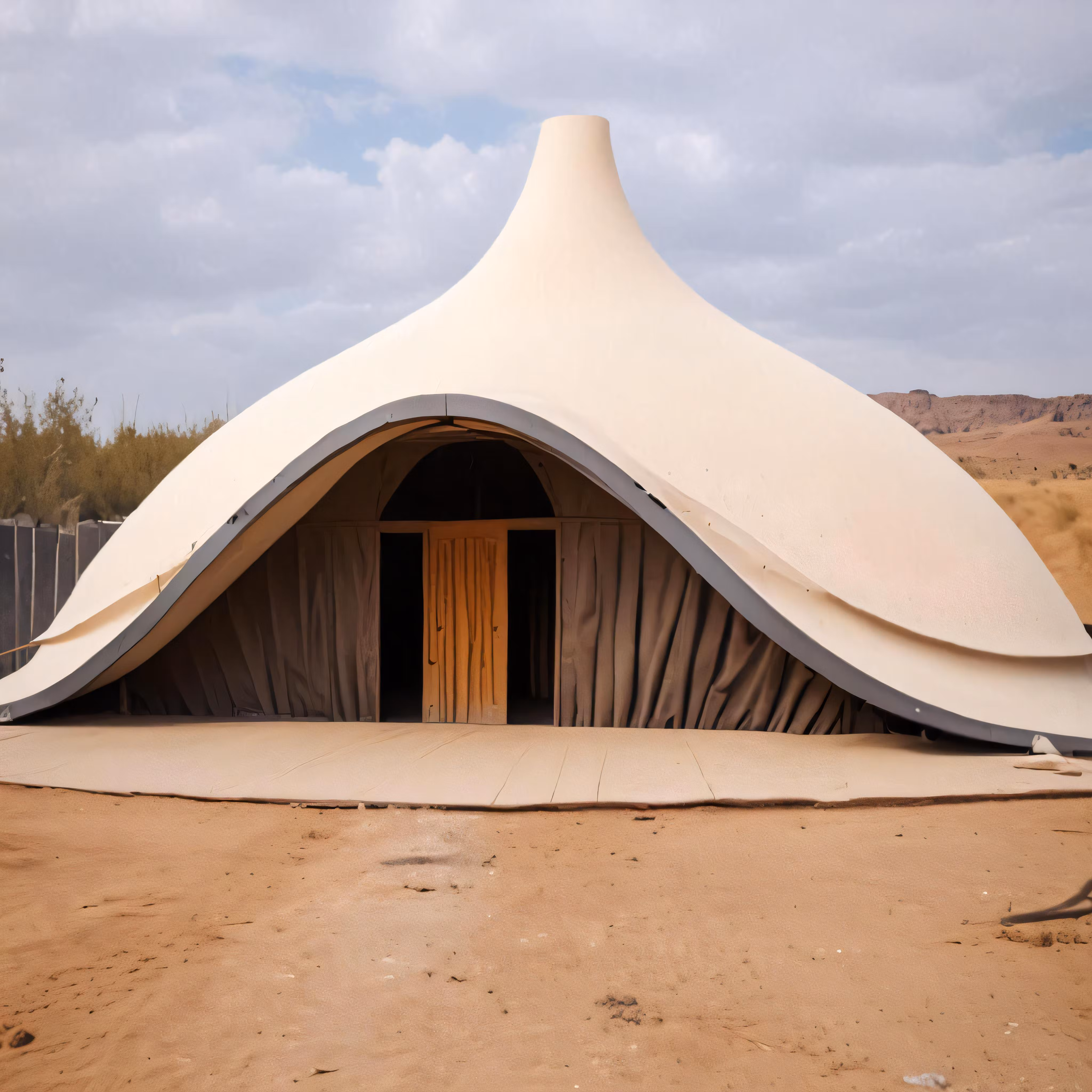 High resolution picture, free to use, there is an unusual shaped structure in the desert