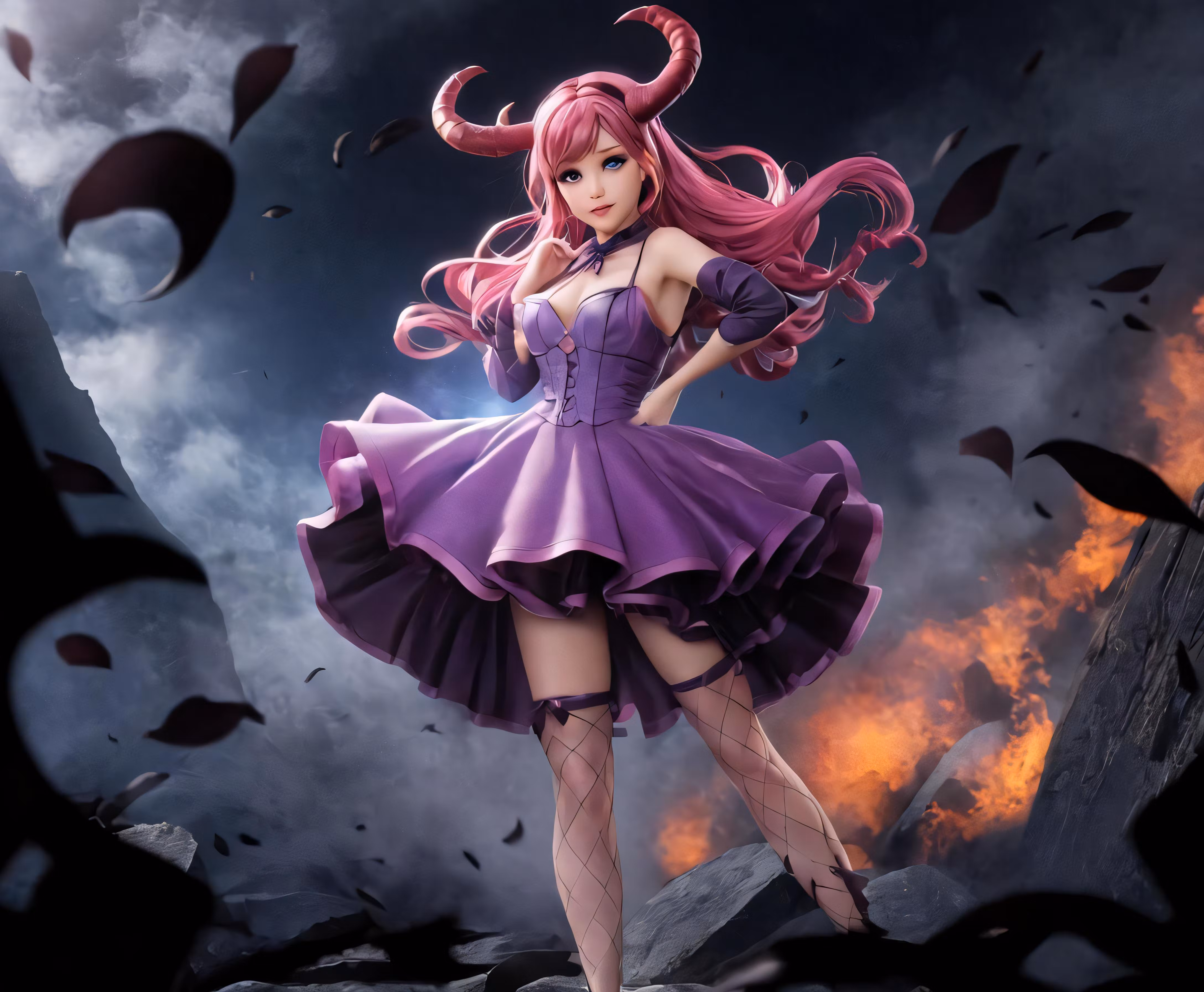 High resolution picture, free to use, this anime girl is posing with long pink hair