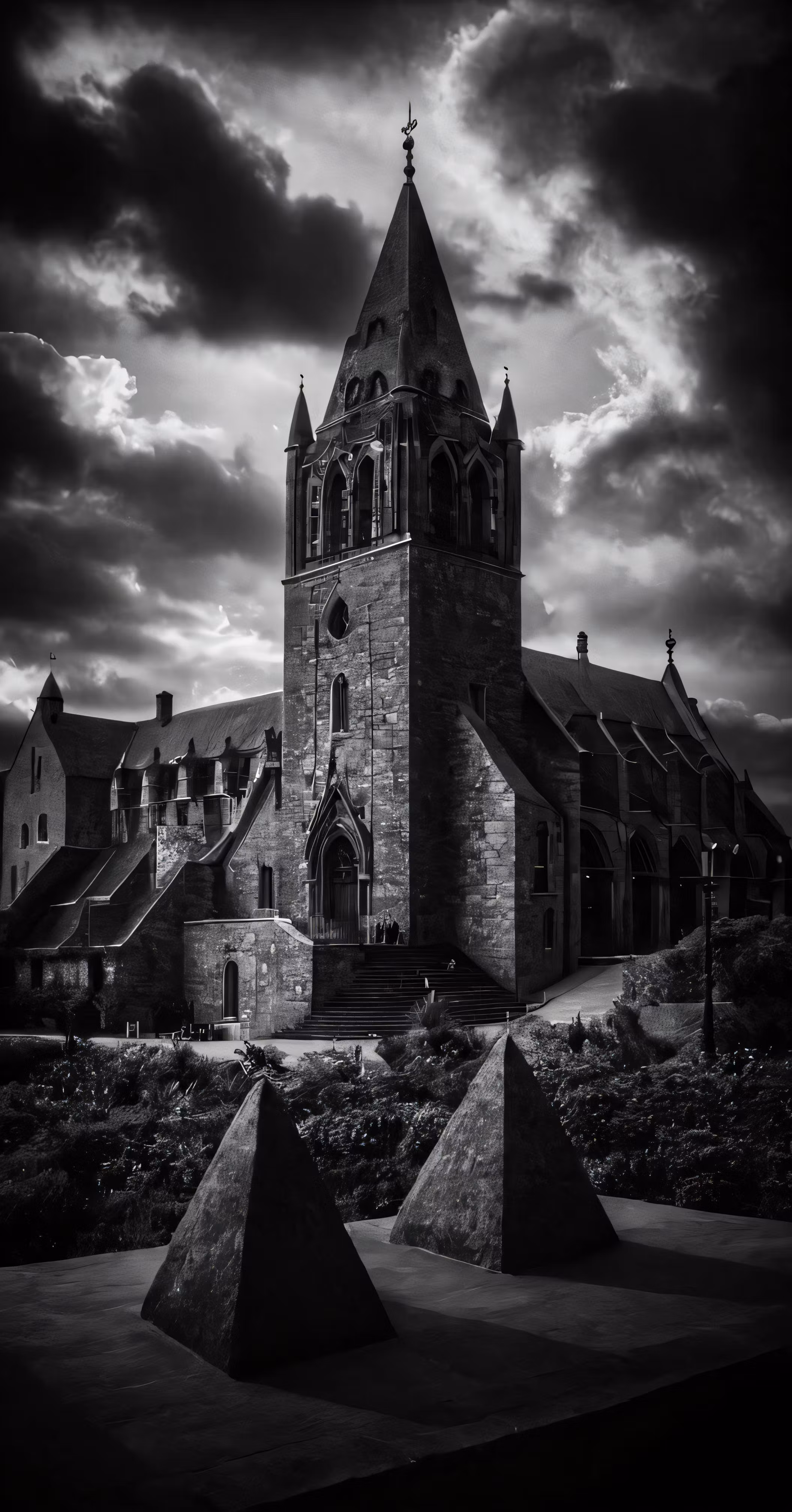 High resolution picture, free to use, this is a beautiful black and white photograph of a church