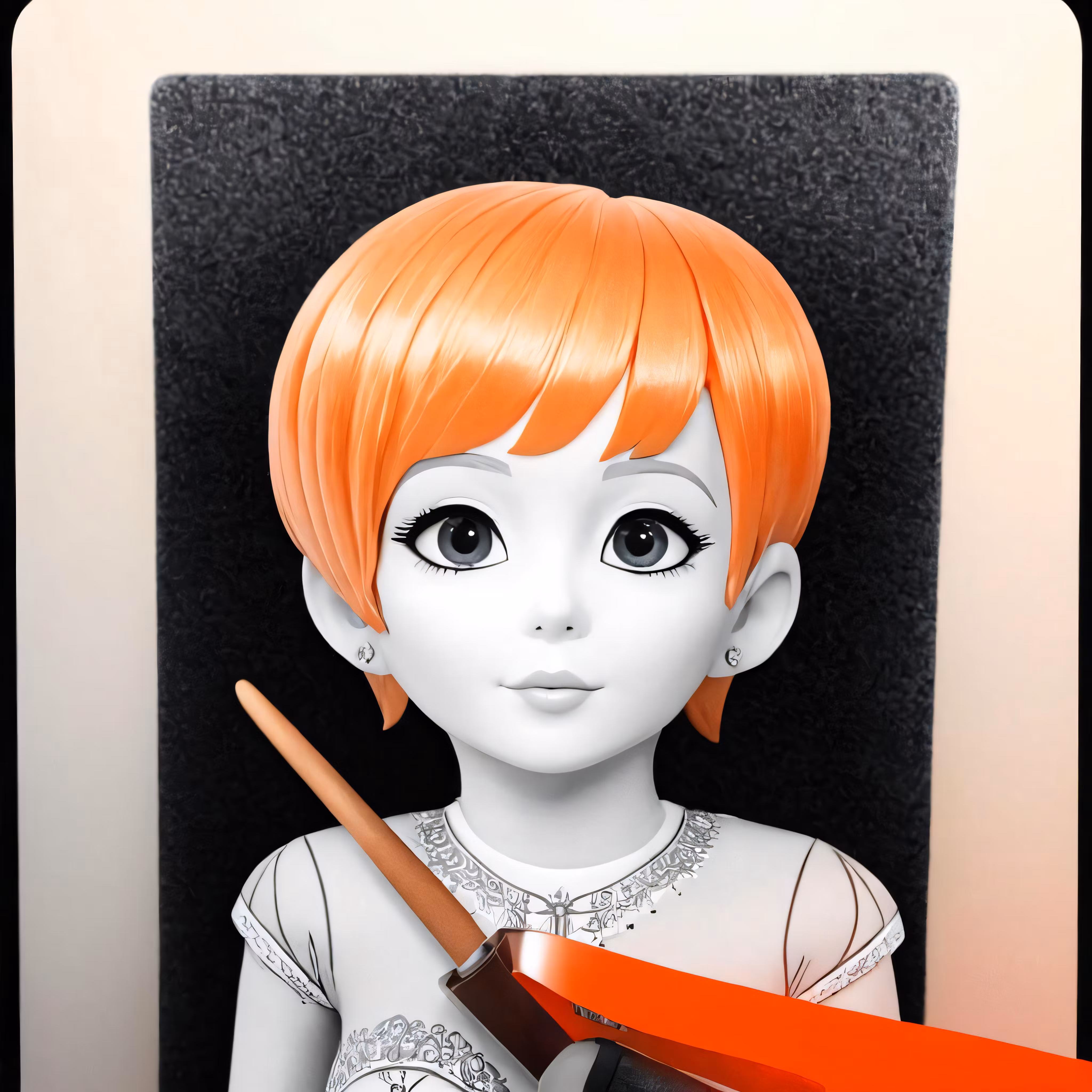 High resolution picture, free to use, this is a doll with a pair of orange scissors