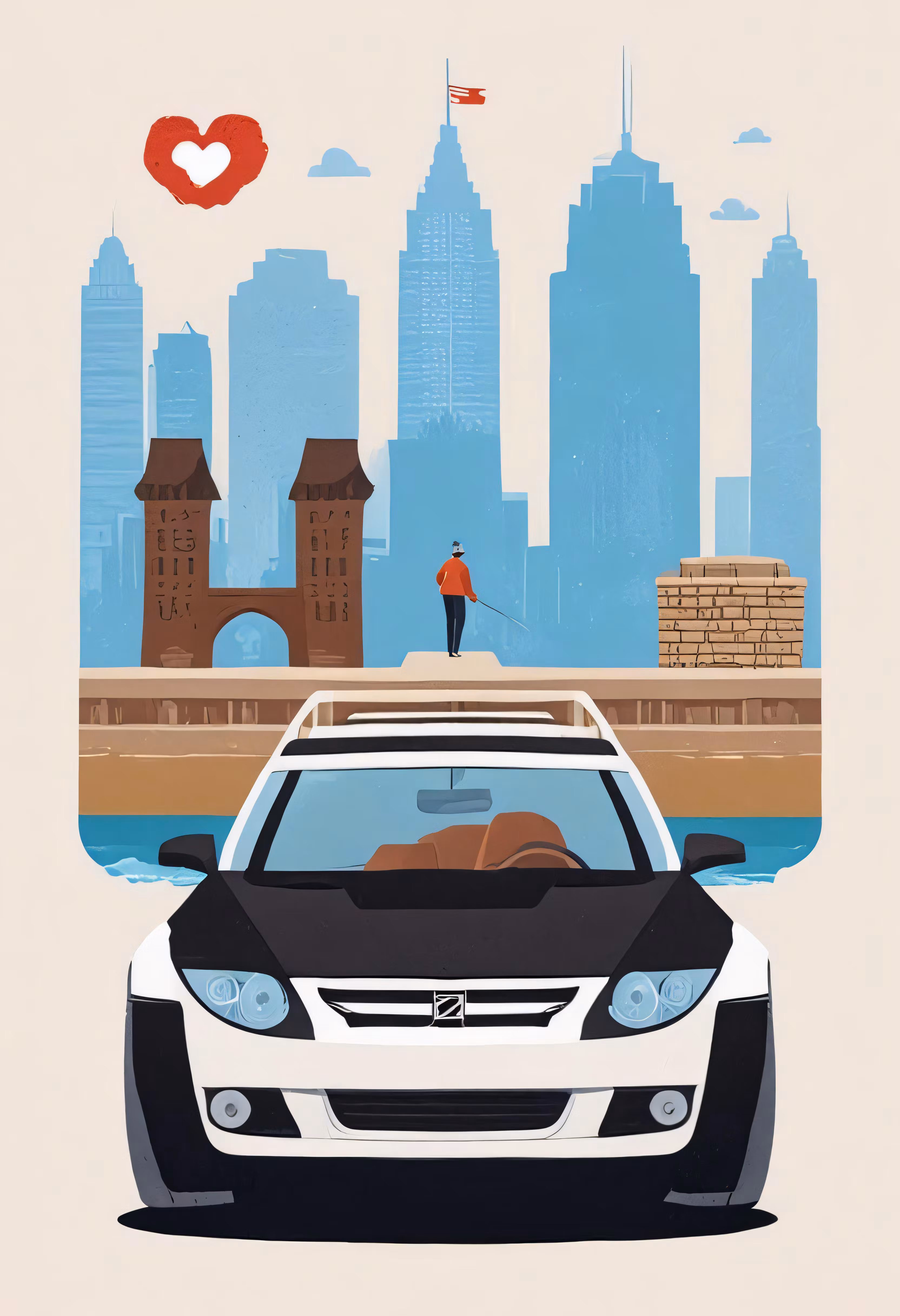 High resolution picture, free to use, this is an illustration of a woman standing in the open hood of her car