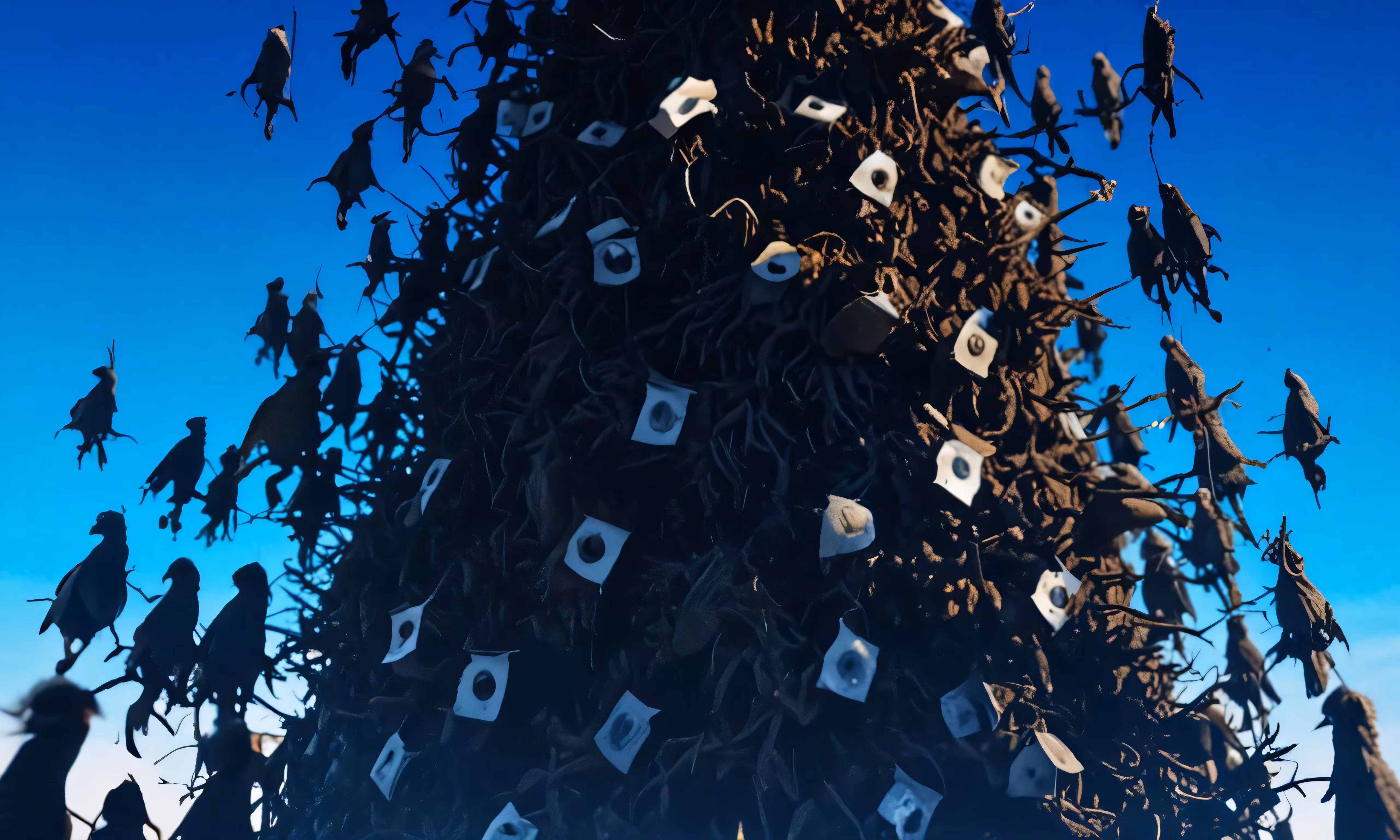 High resolution picture, free to use, this is the silhouette of multiple trees against a blue sky