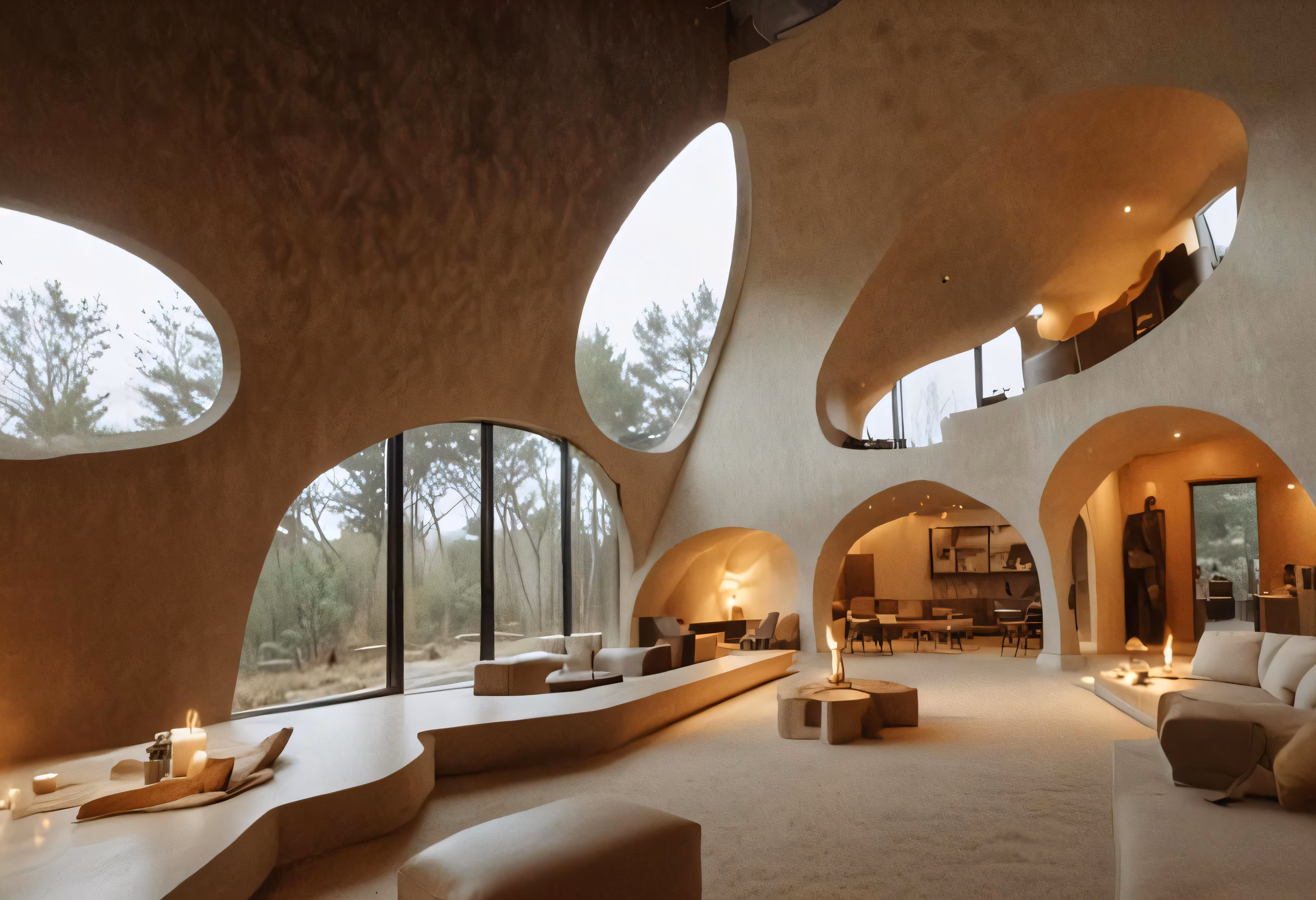 High resolution picture, free to use, this living room is filled with circular windows