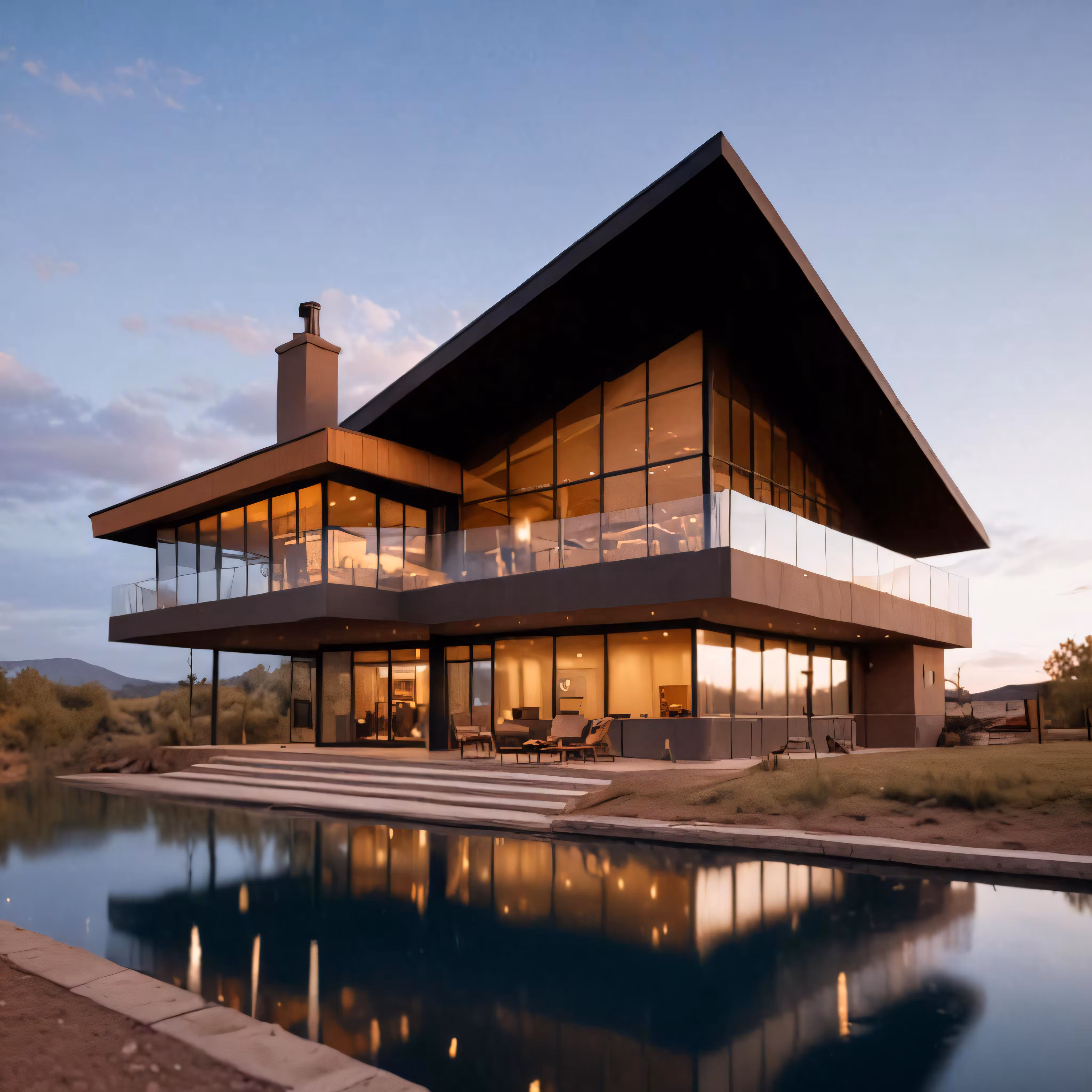 High resolution picture, free to use, this modern house has a large pool in the yard