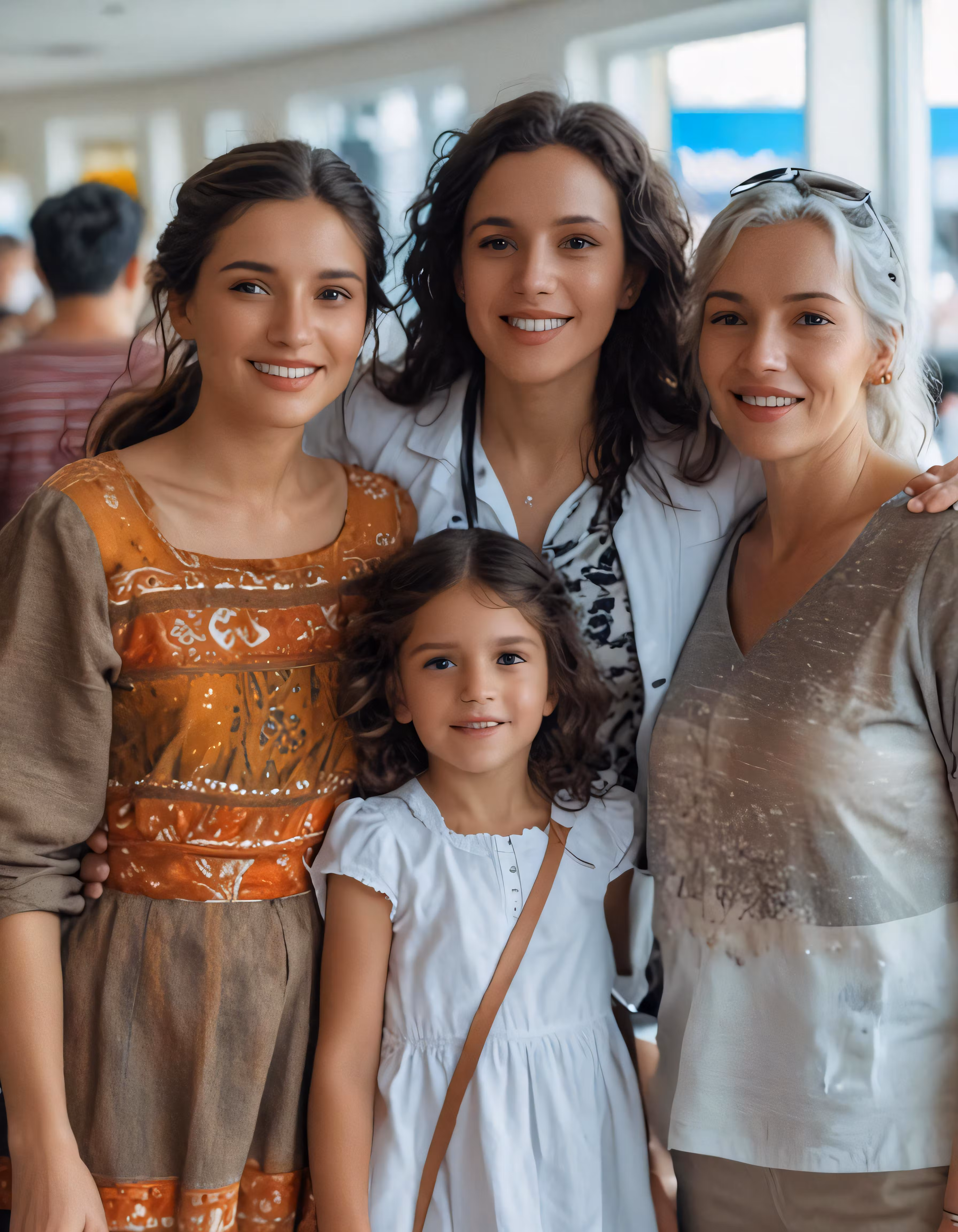 High resolution picture, free to use, three beautiful women posing for a picture in front of a group of people
