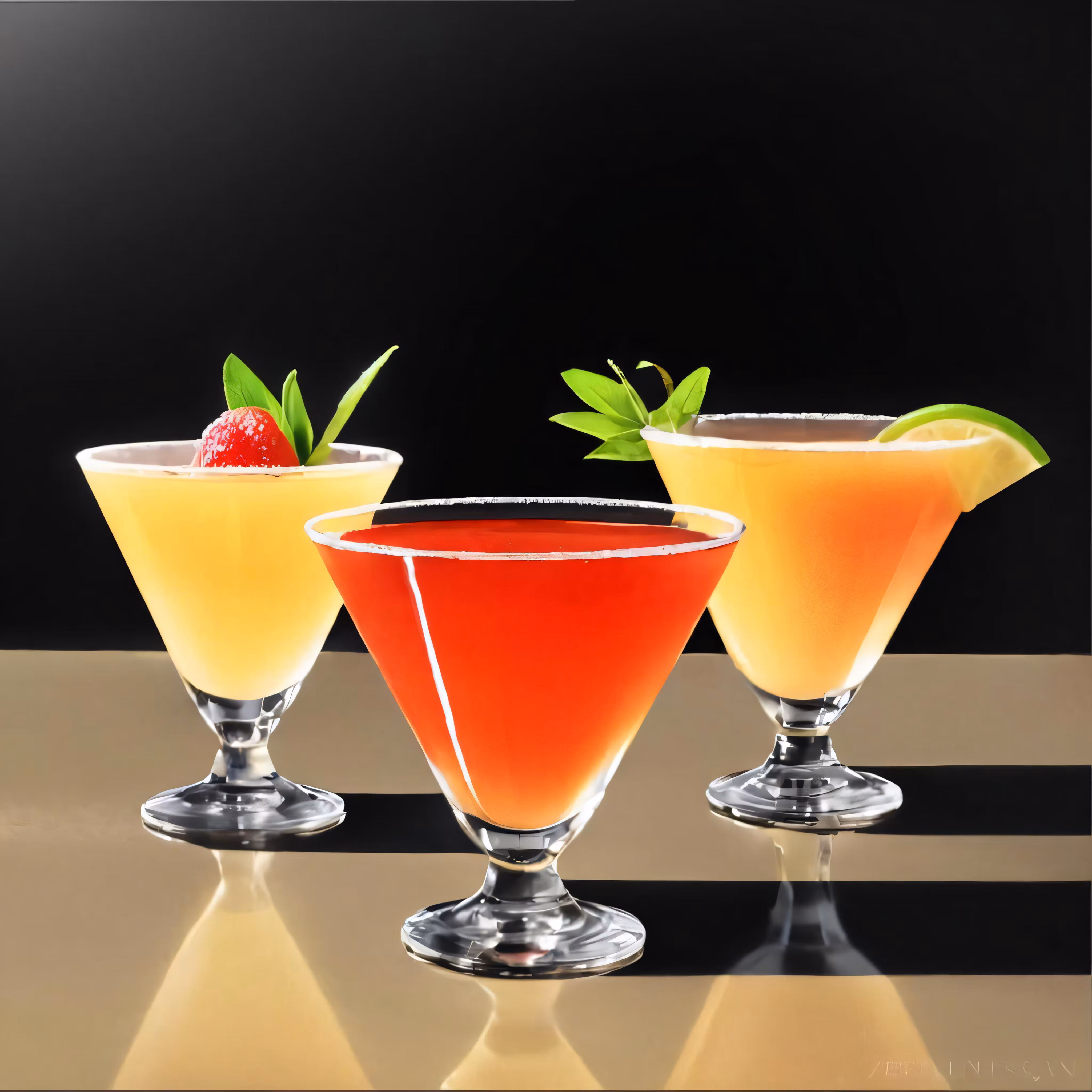 High resolution picture, free to use, three glasses of different colored drinks with some fruit