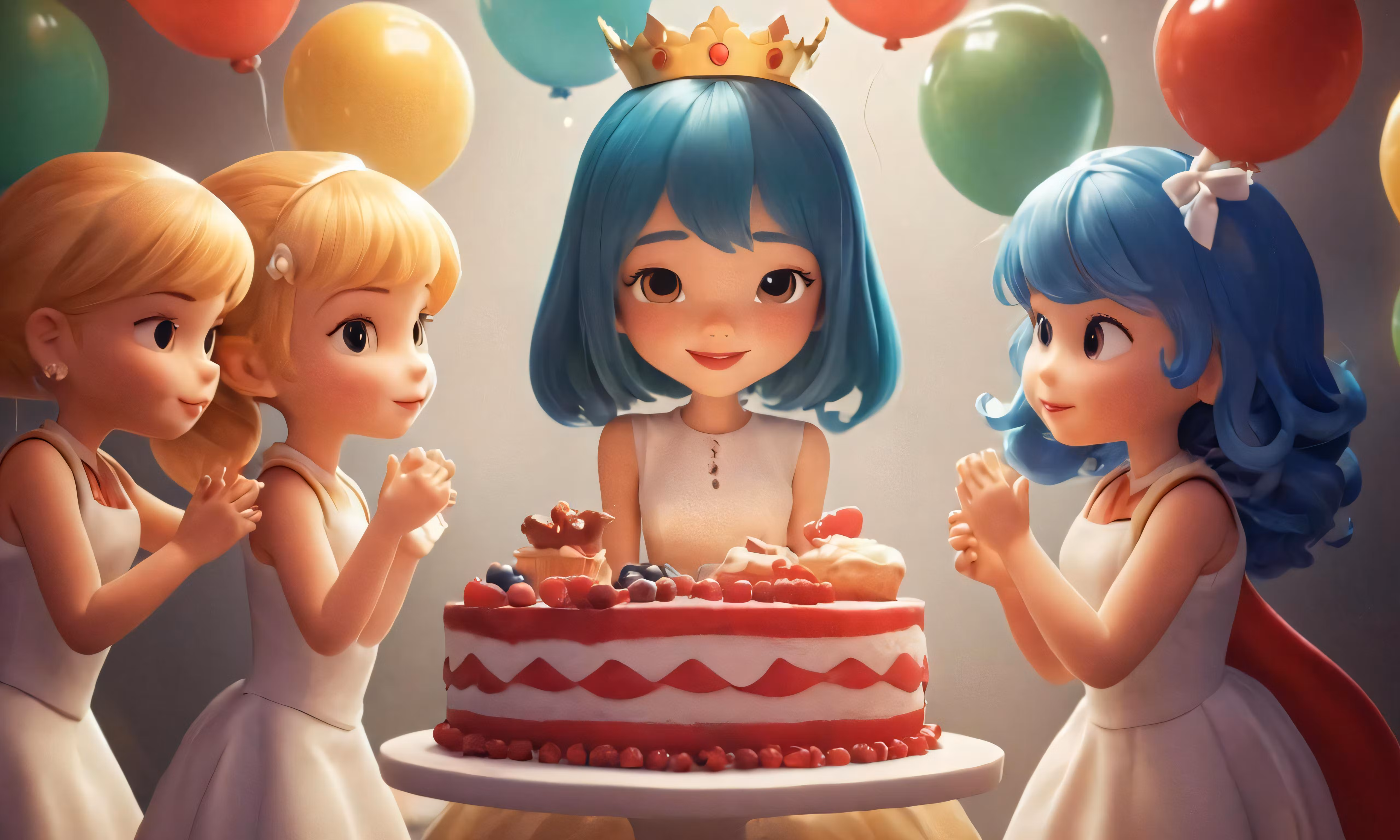 High resolution picture, free to use, three little girls are gathered around a birthday cake