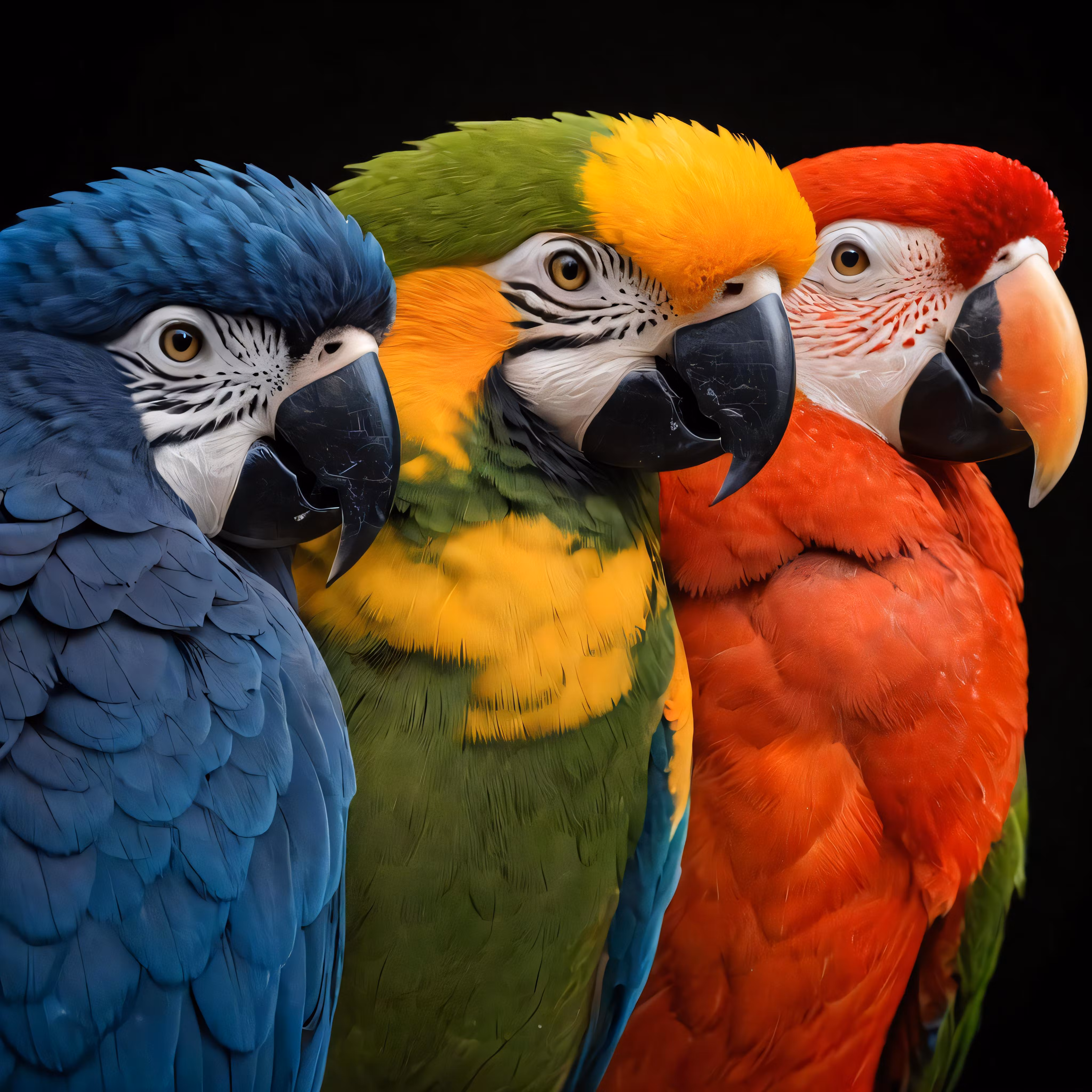 High resolution picture, free to use, three multicolored parrots are sitting next to each other
