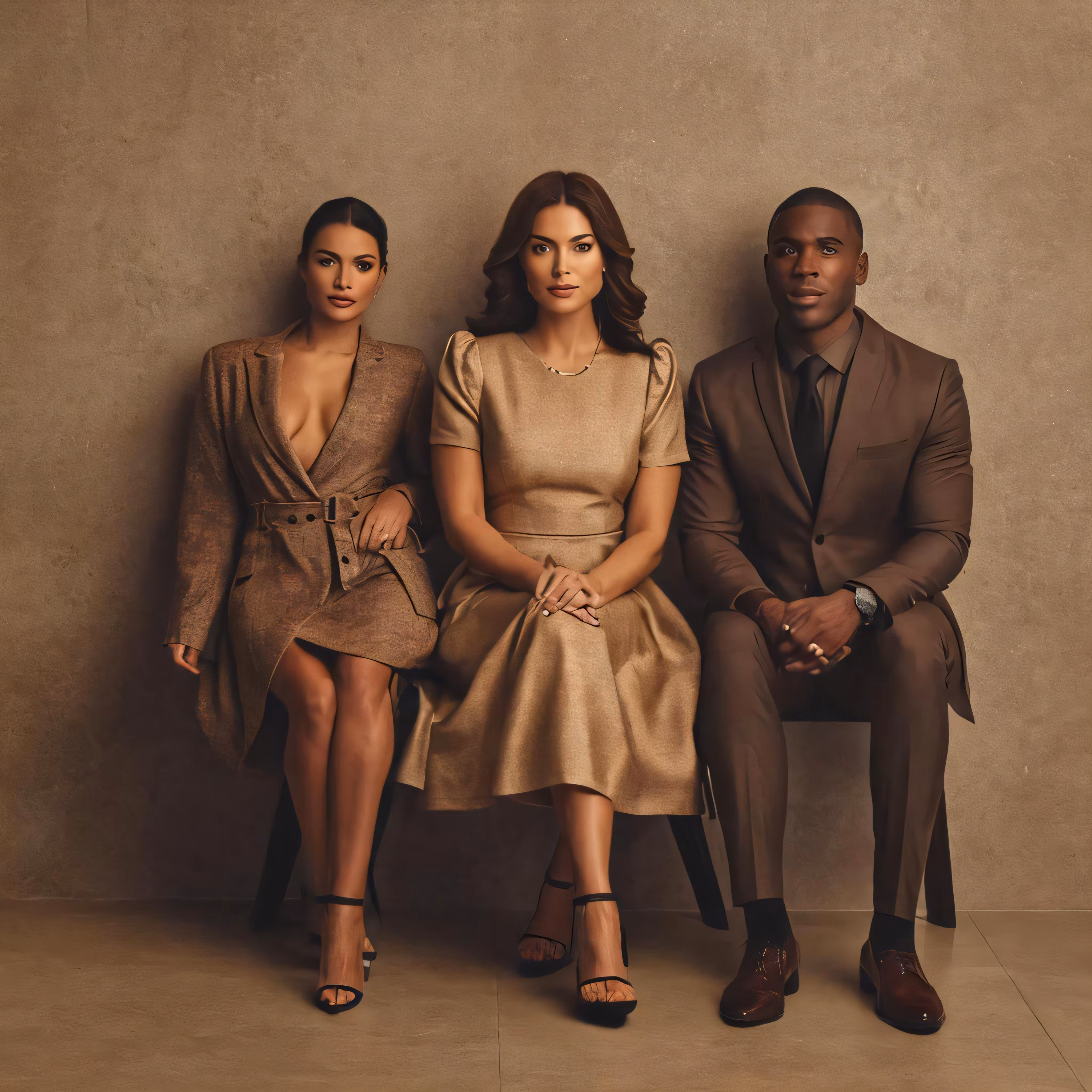 High resolution picture, free to use, three people are sitting on the bench near a wall