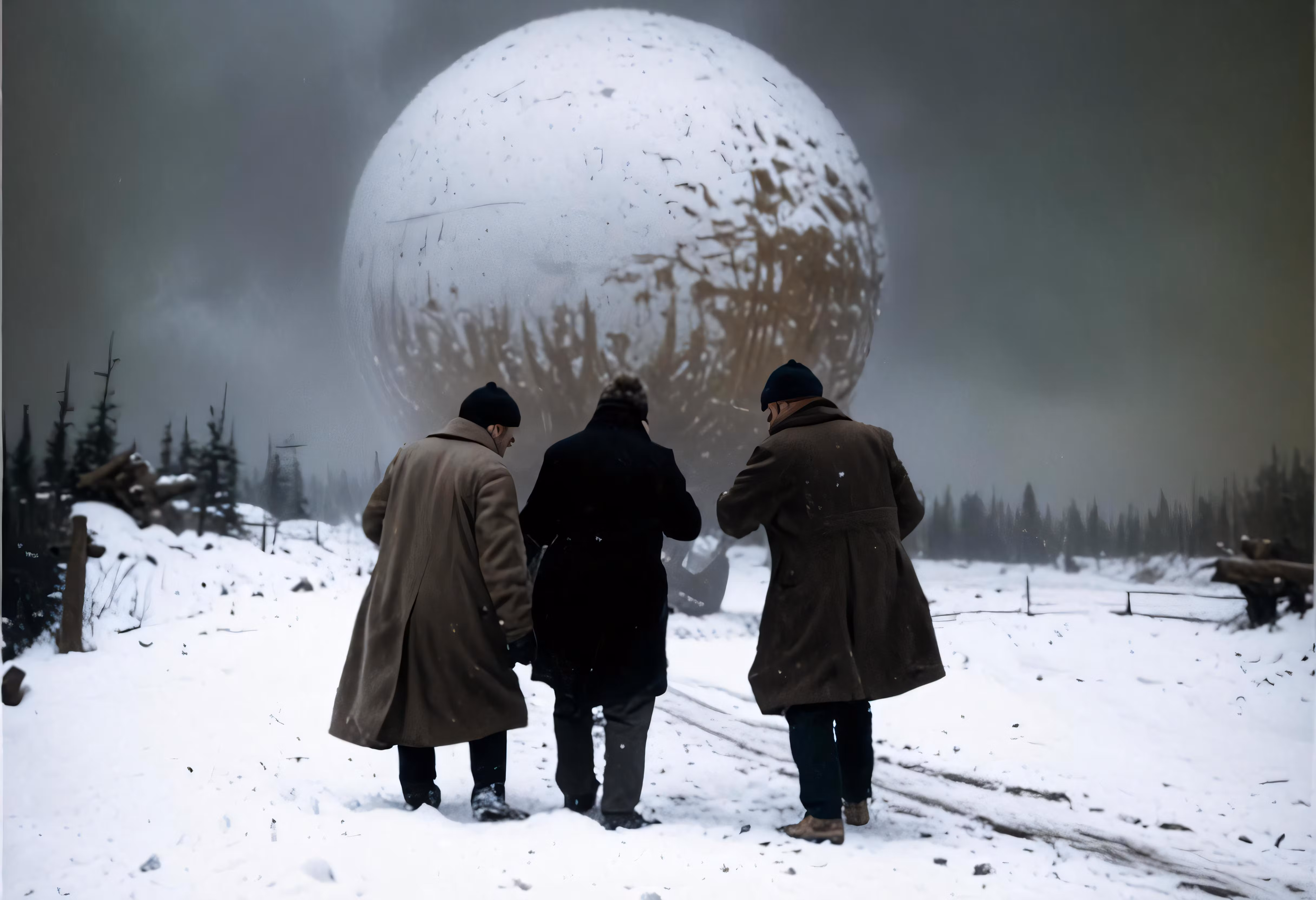 High resolution picture, free to use, three people looking at a giant snow globe