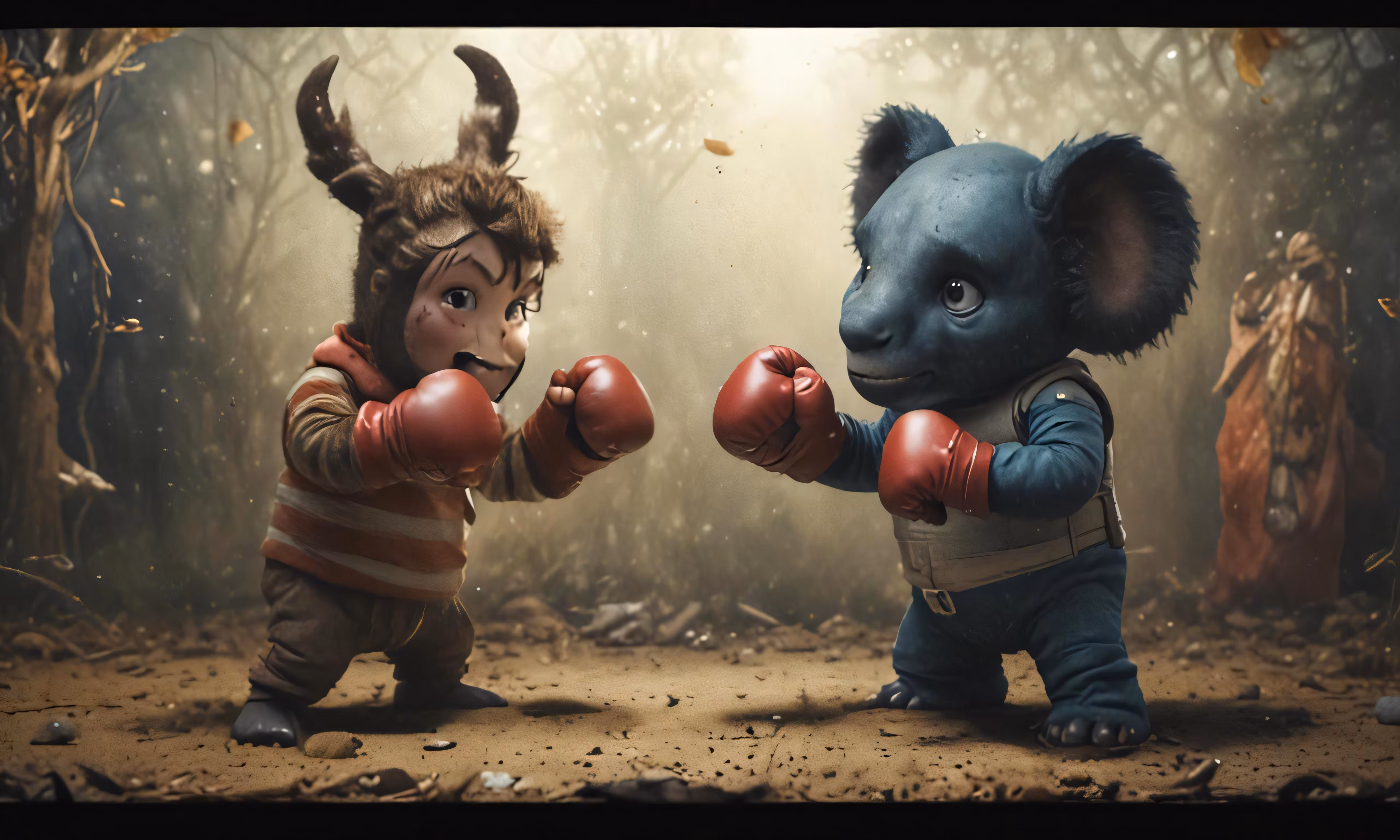High resolution picture, free to use, two animals dressed up like they are boxing