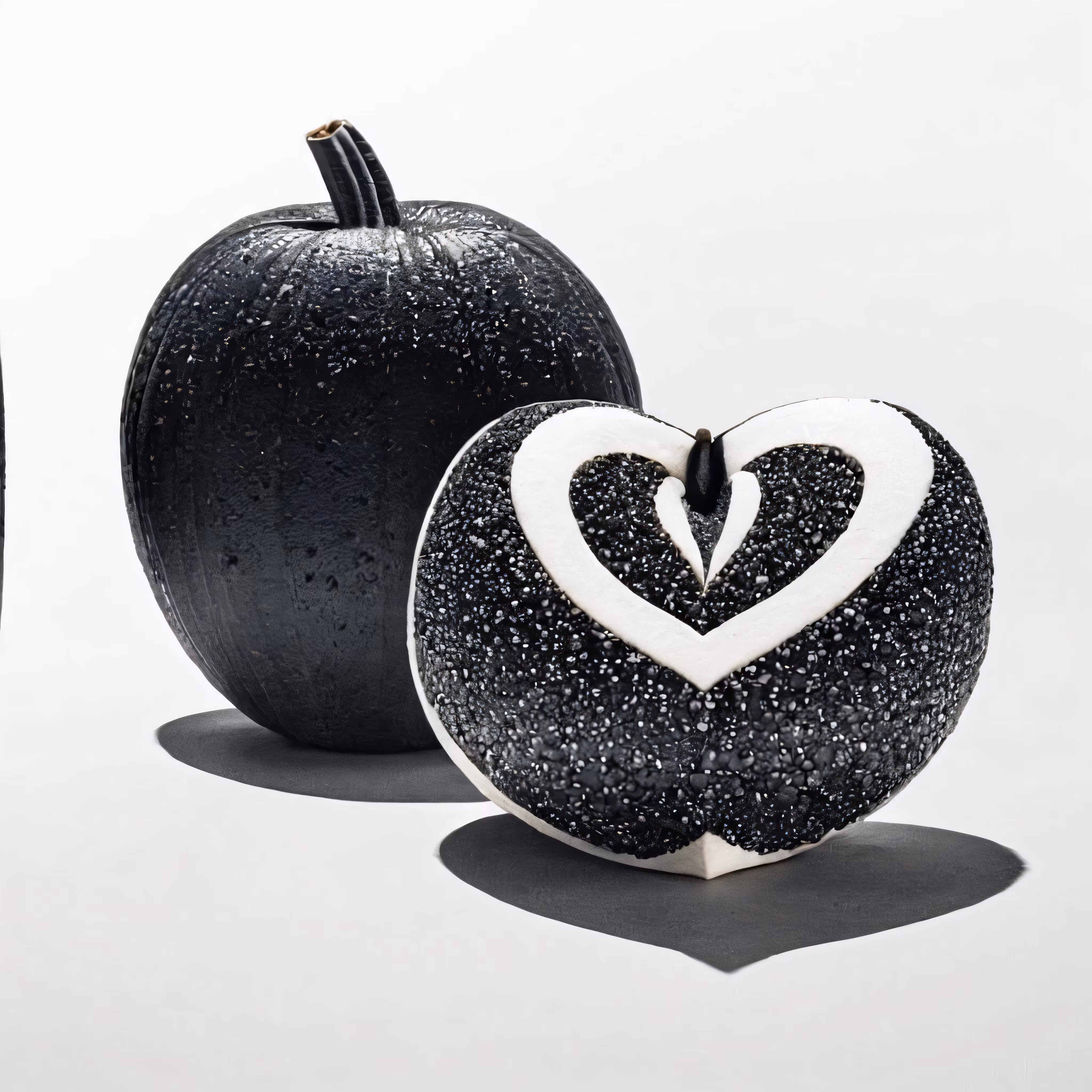 High resolution picture, free to use, two black apple shaped objects with white decoration on them