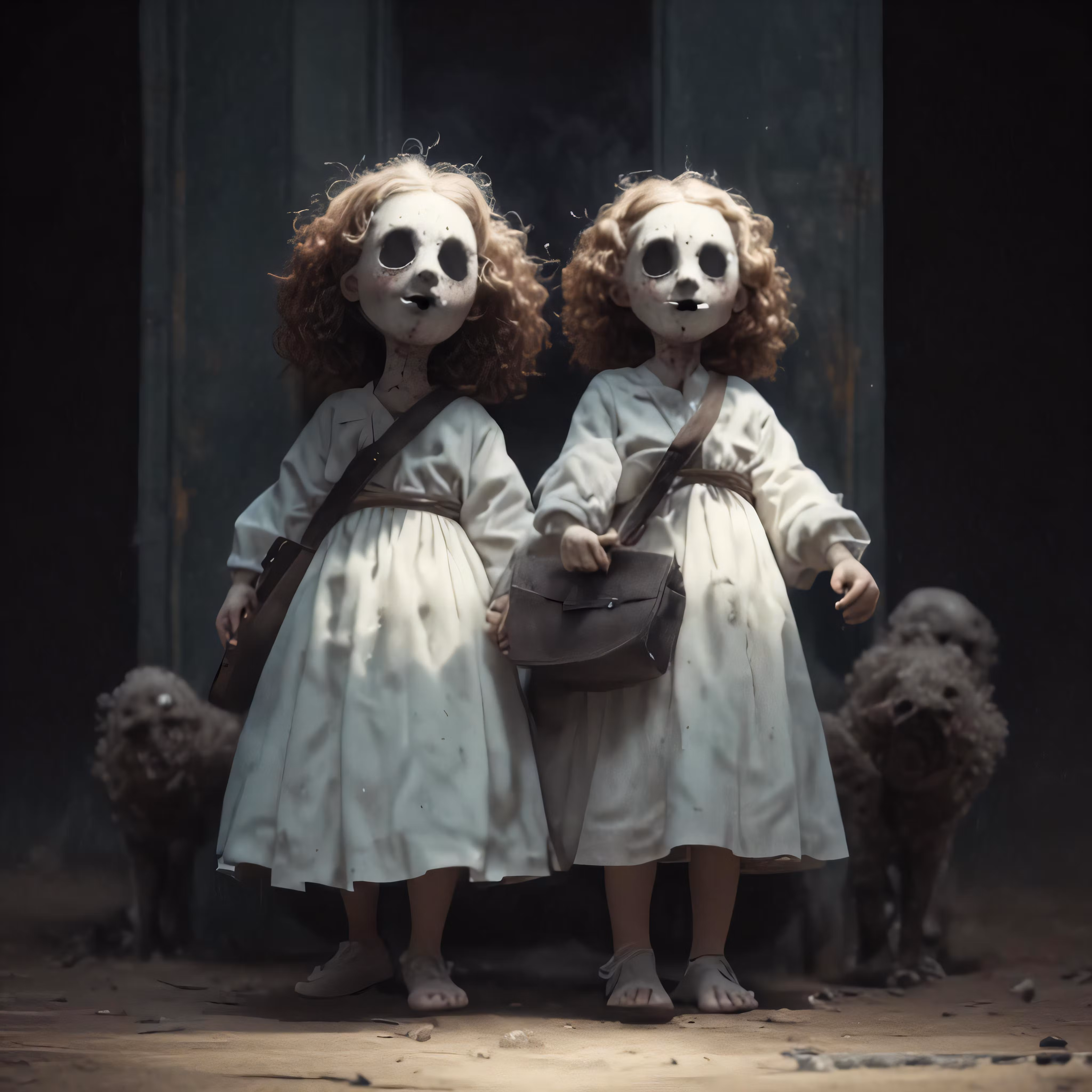 High resolution picture, free to use, two creepy little girls dressed as zombies