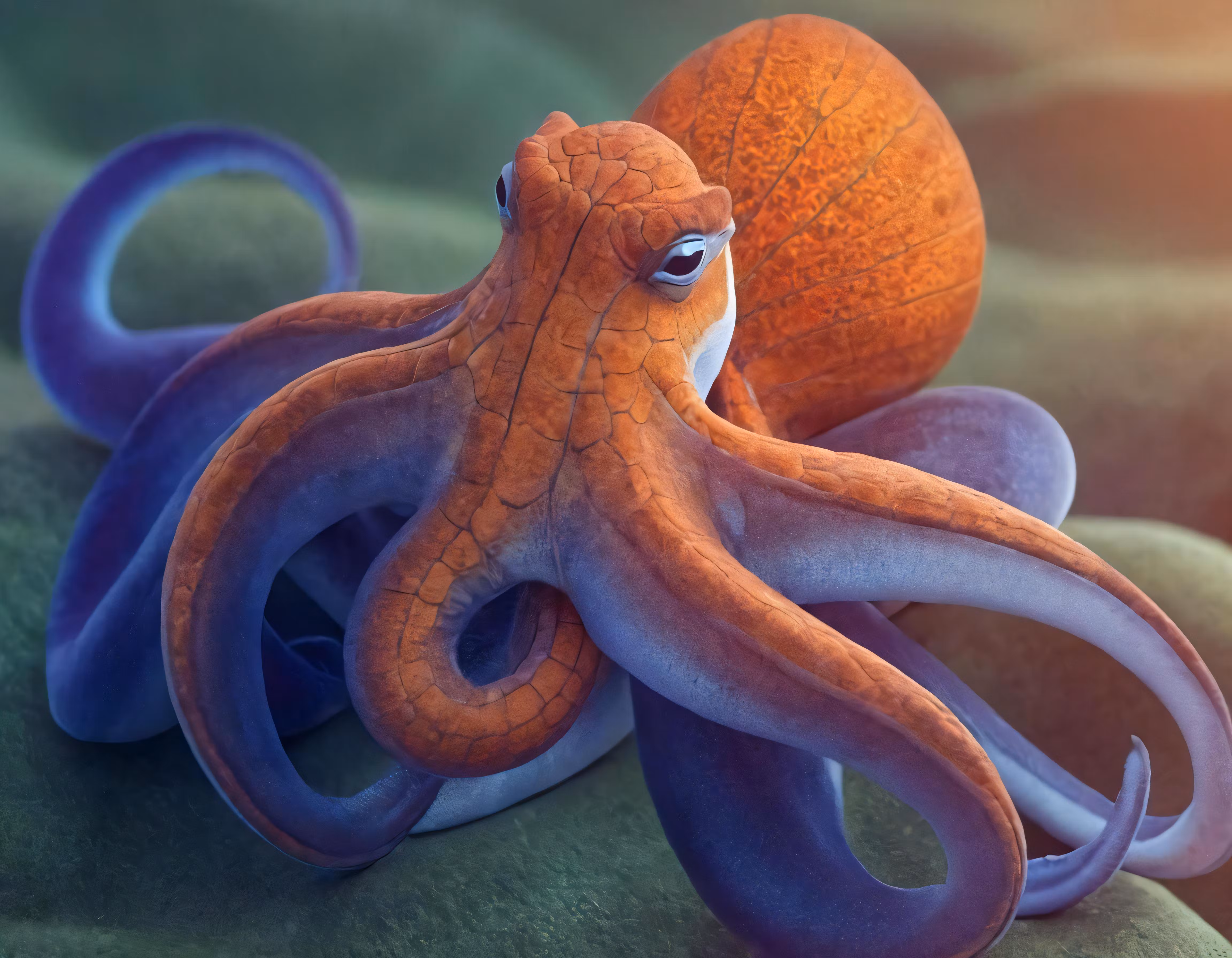 High resolution picture, free to use, two figurines with octopus heads and one is posed on a bed