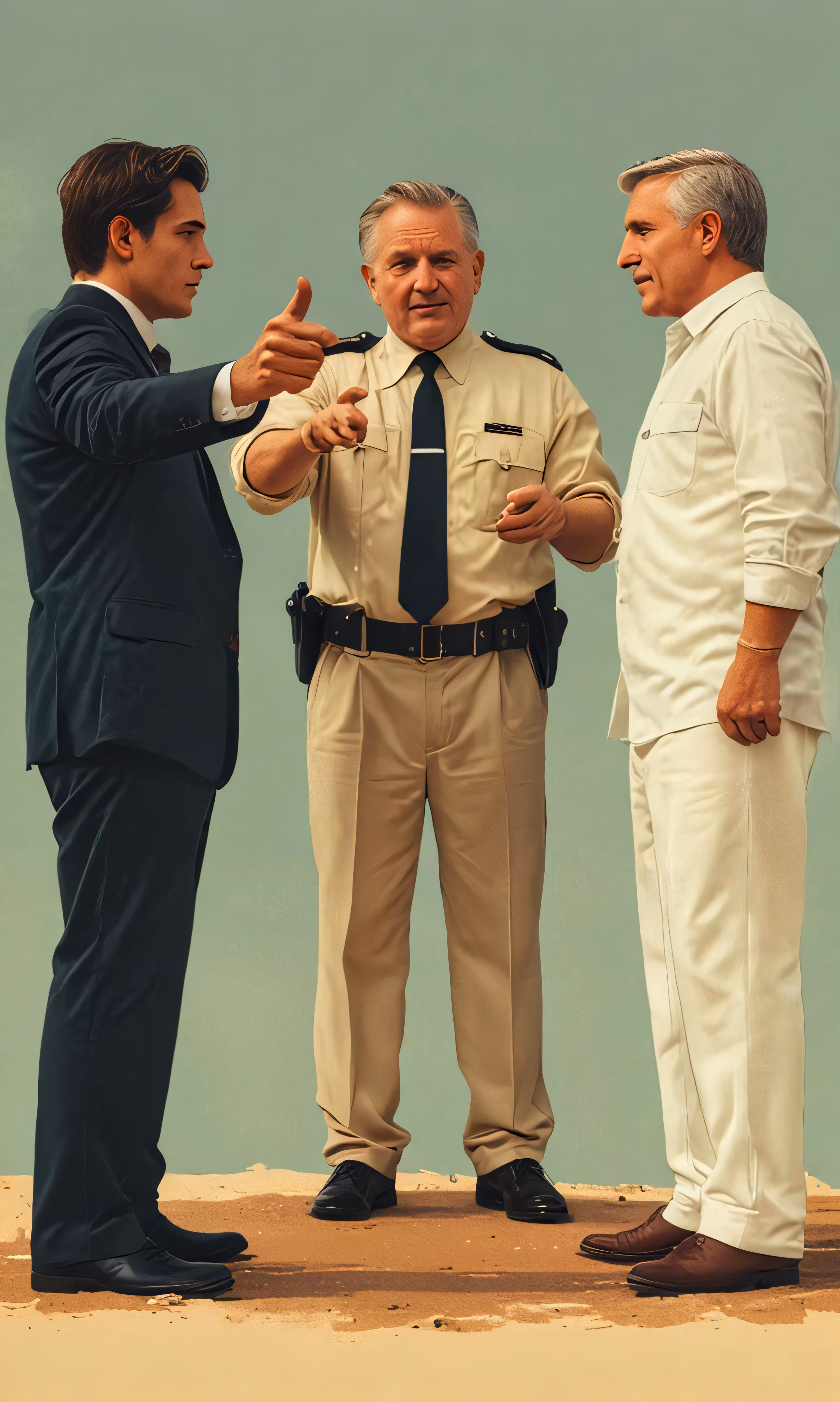 High resolution picture, free to use, two men are talking to two uniformed officers