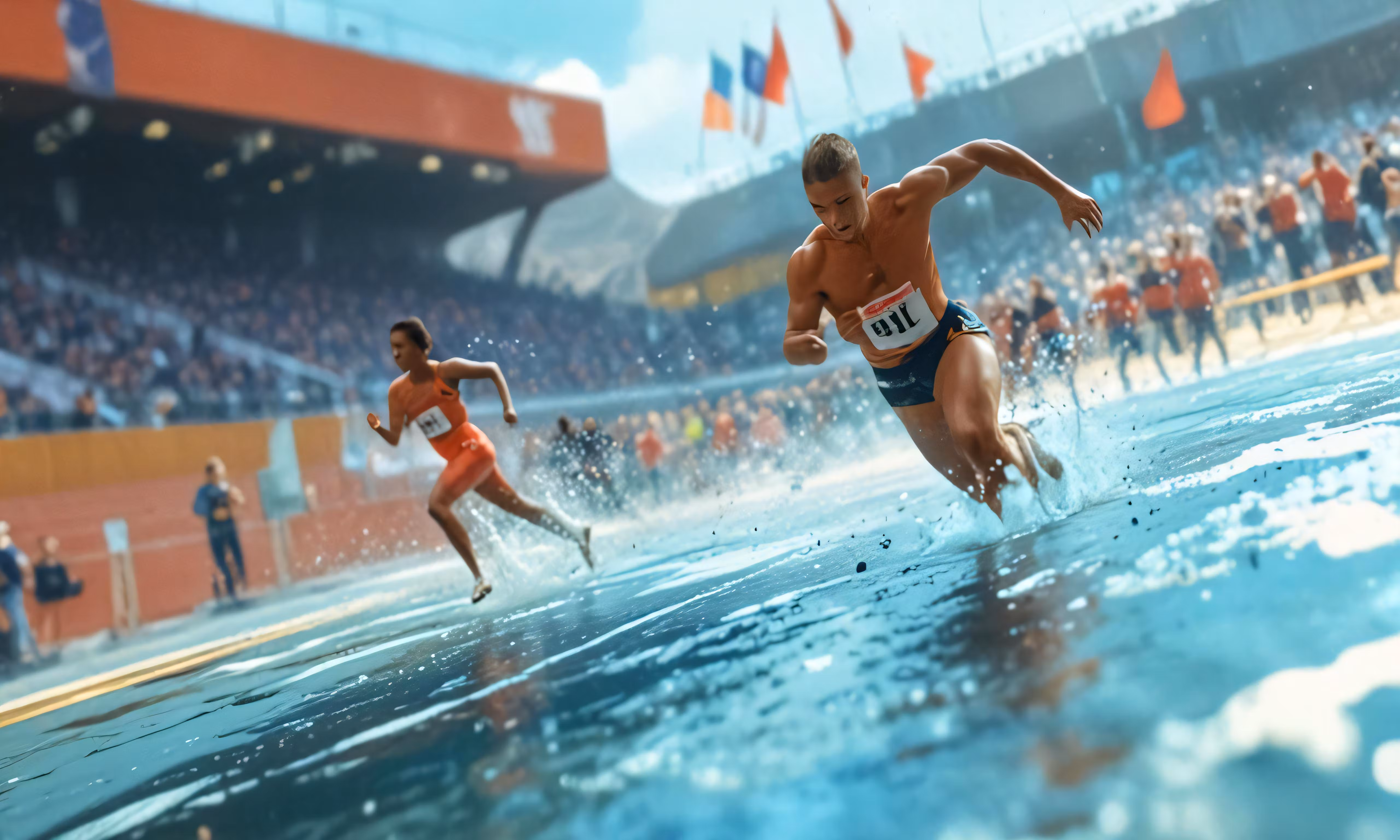 High resolution picture, free to use, two men competing in the ocean with a crowd watching