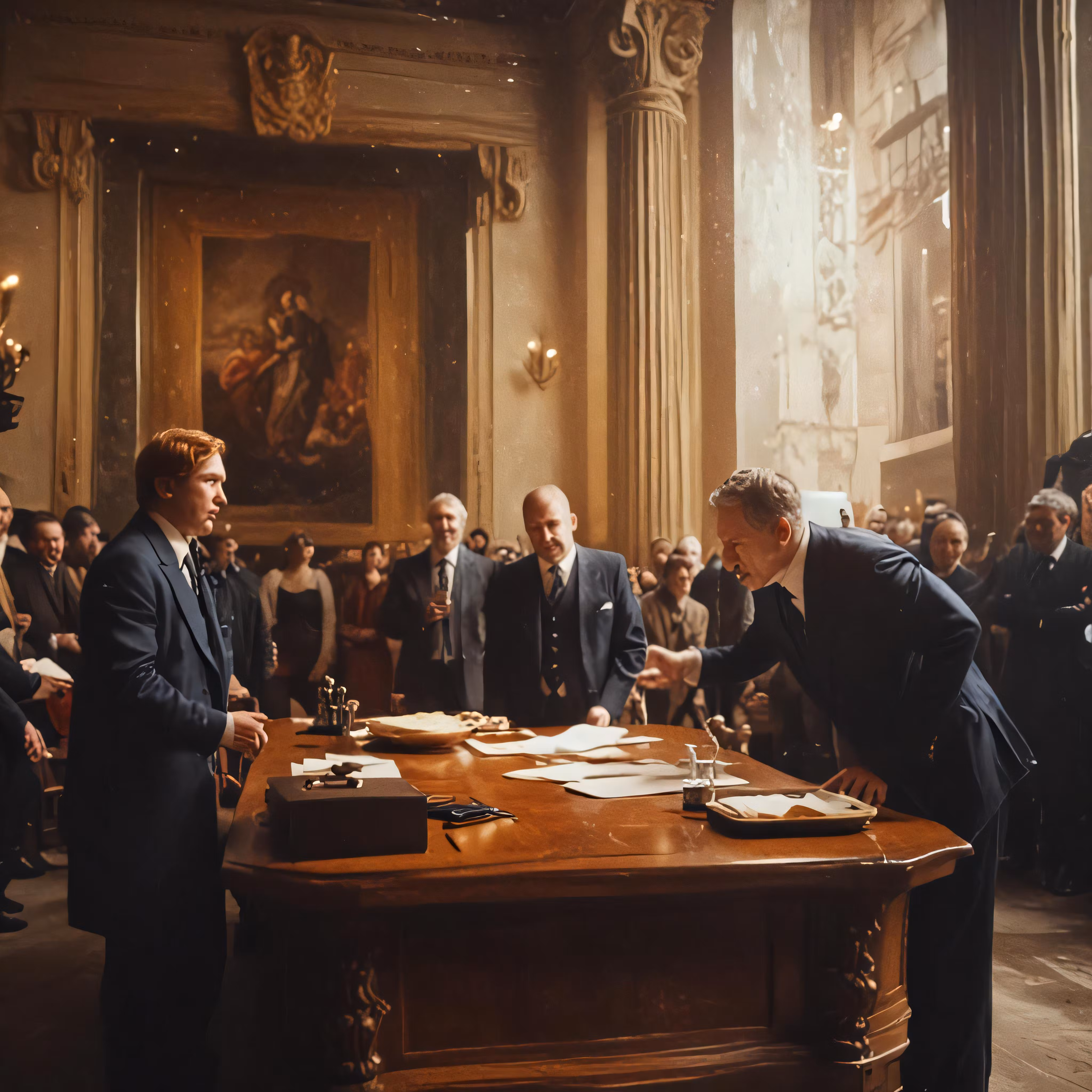 High resolution picture, free to use, two men shaking hands over a signed document on a table