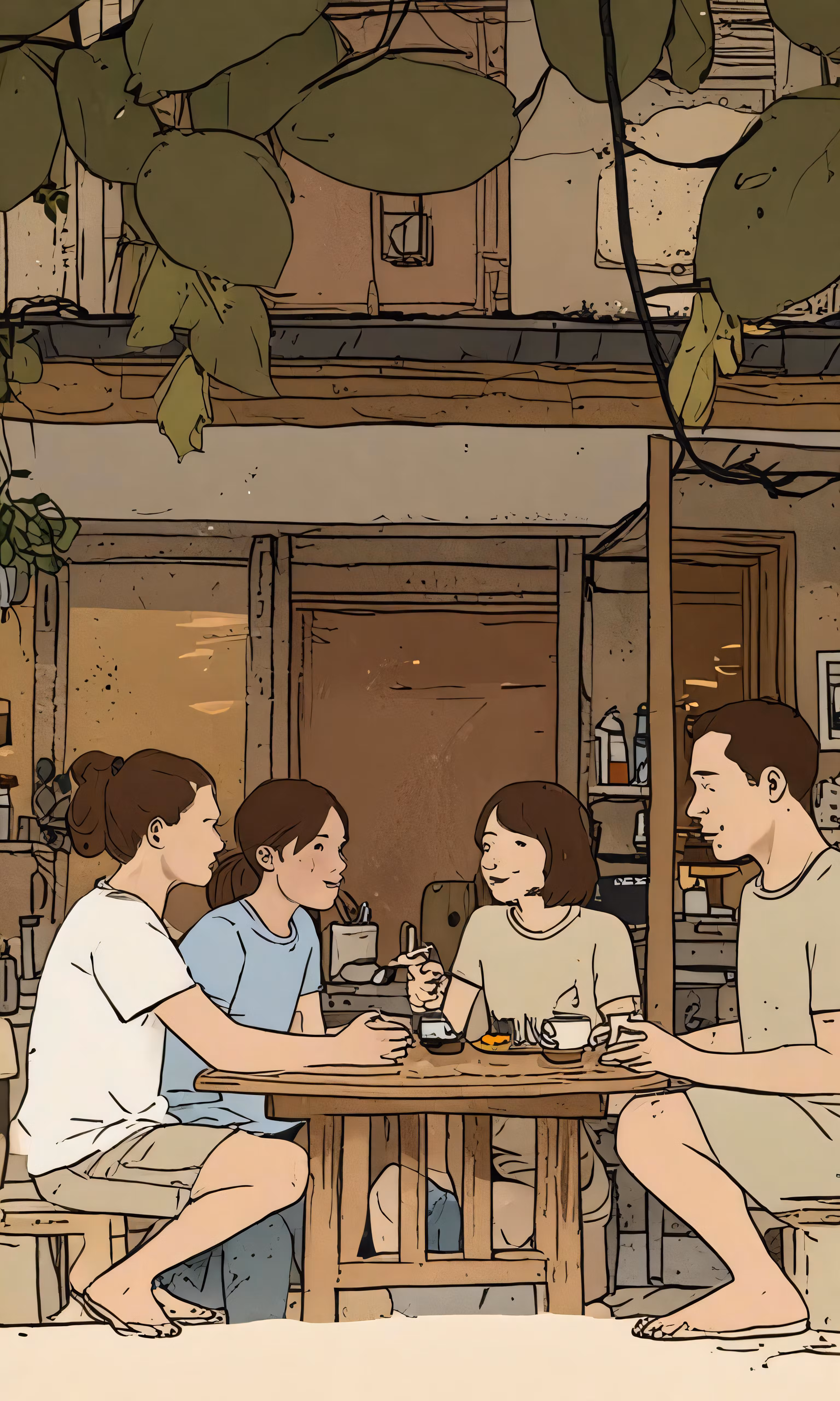 High resolution picture, free to use, two people and one child sitting at a table with drinks