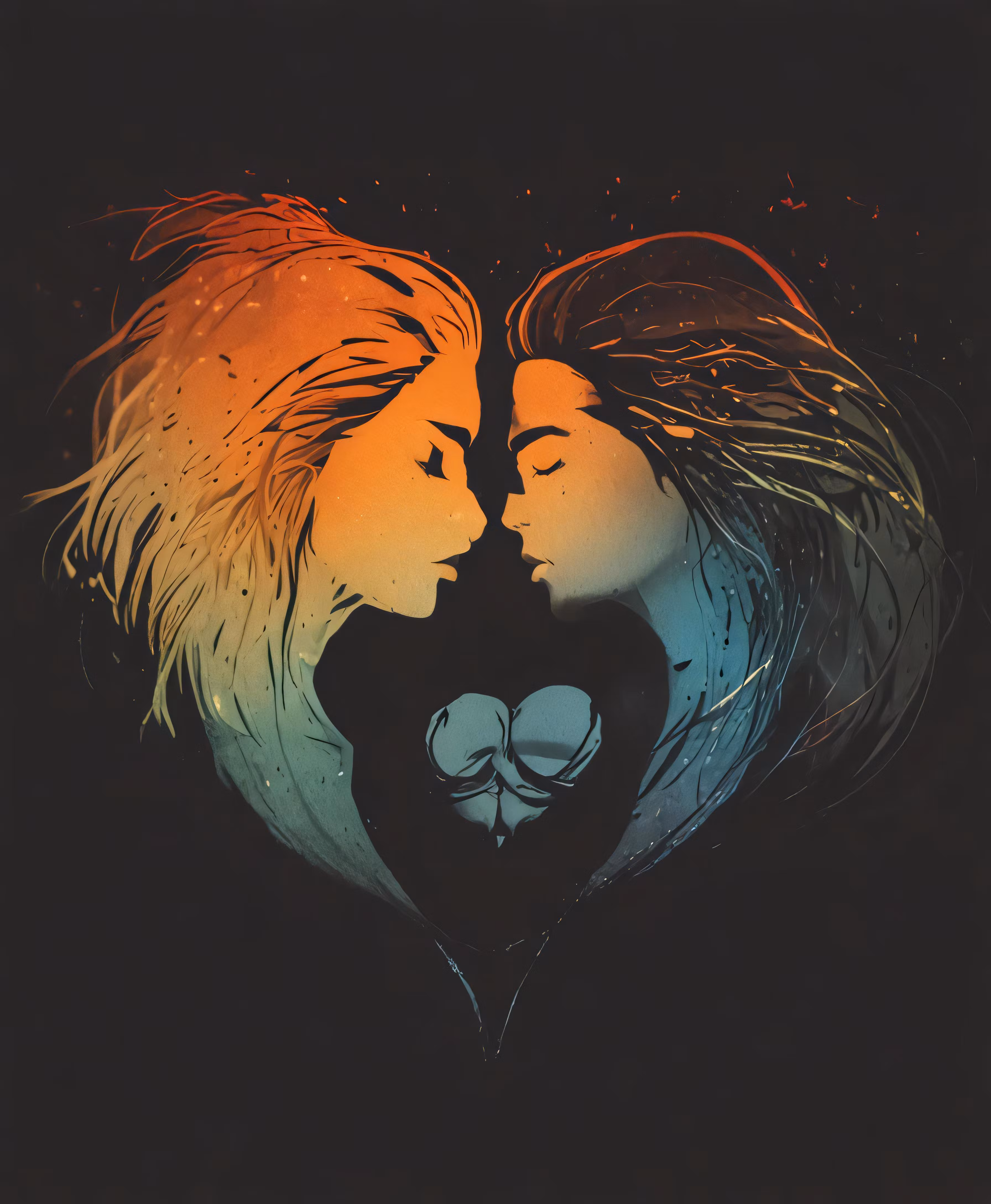High resolution picture, free to use, two people are kissing behind a heart
