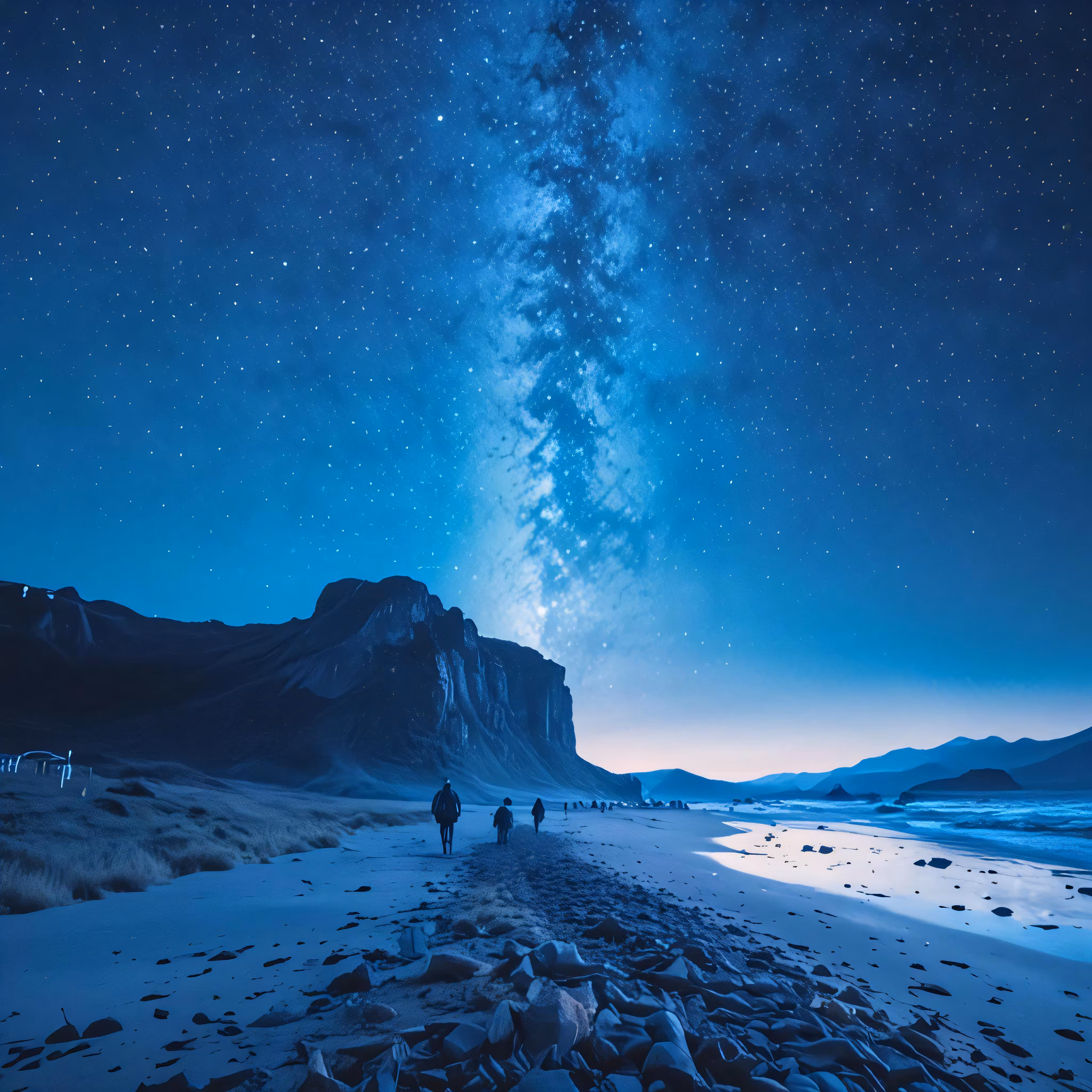 High resolution picture, free to use, two people are standing on a beach looking at the sky