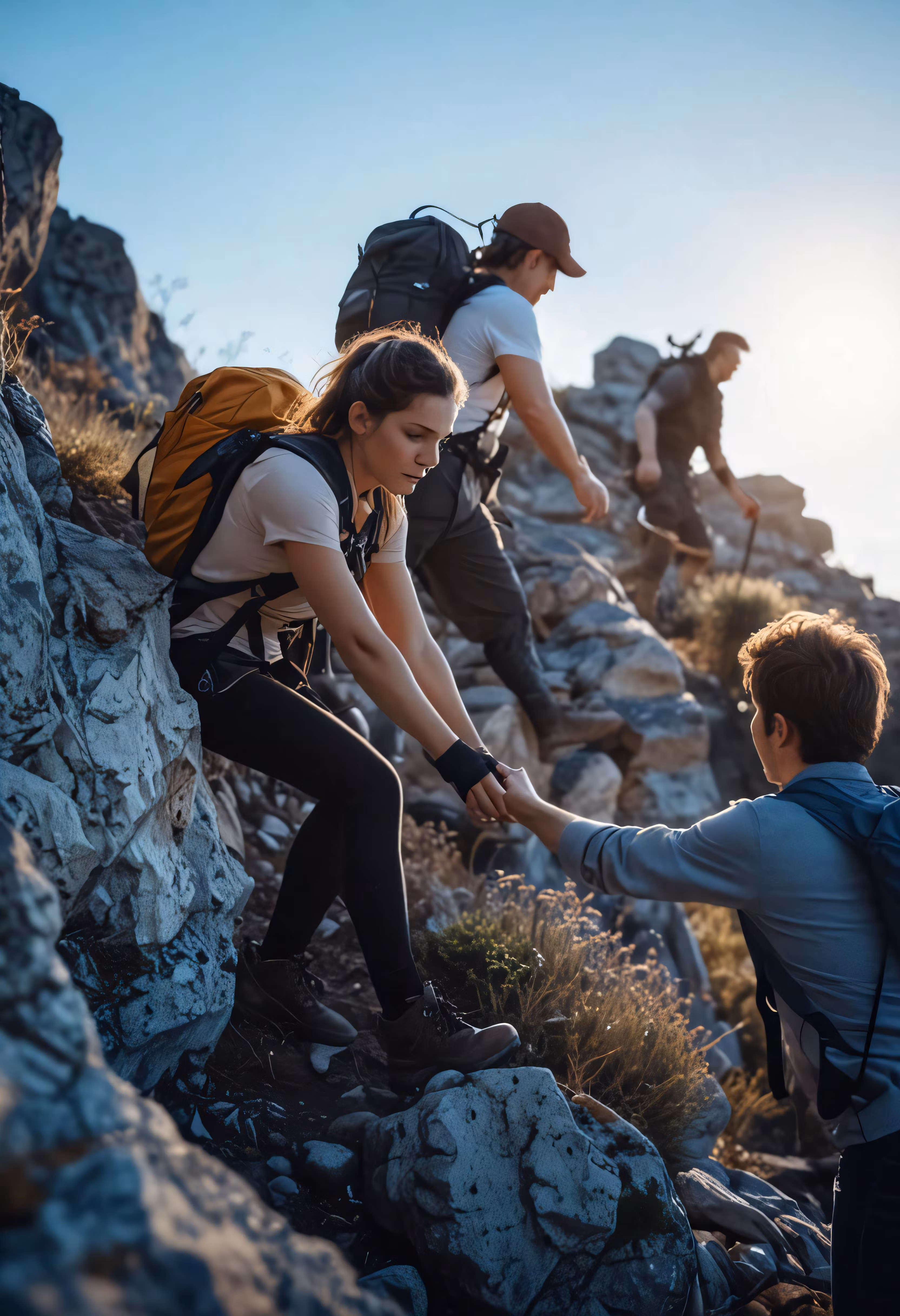 High resolution picture, free to use, two people climbing on the side of a mountain