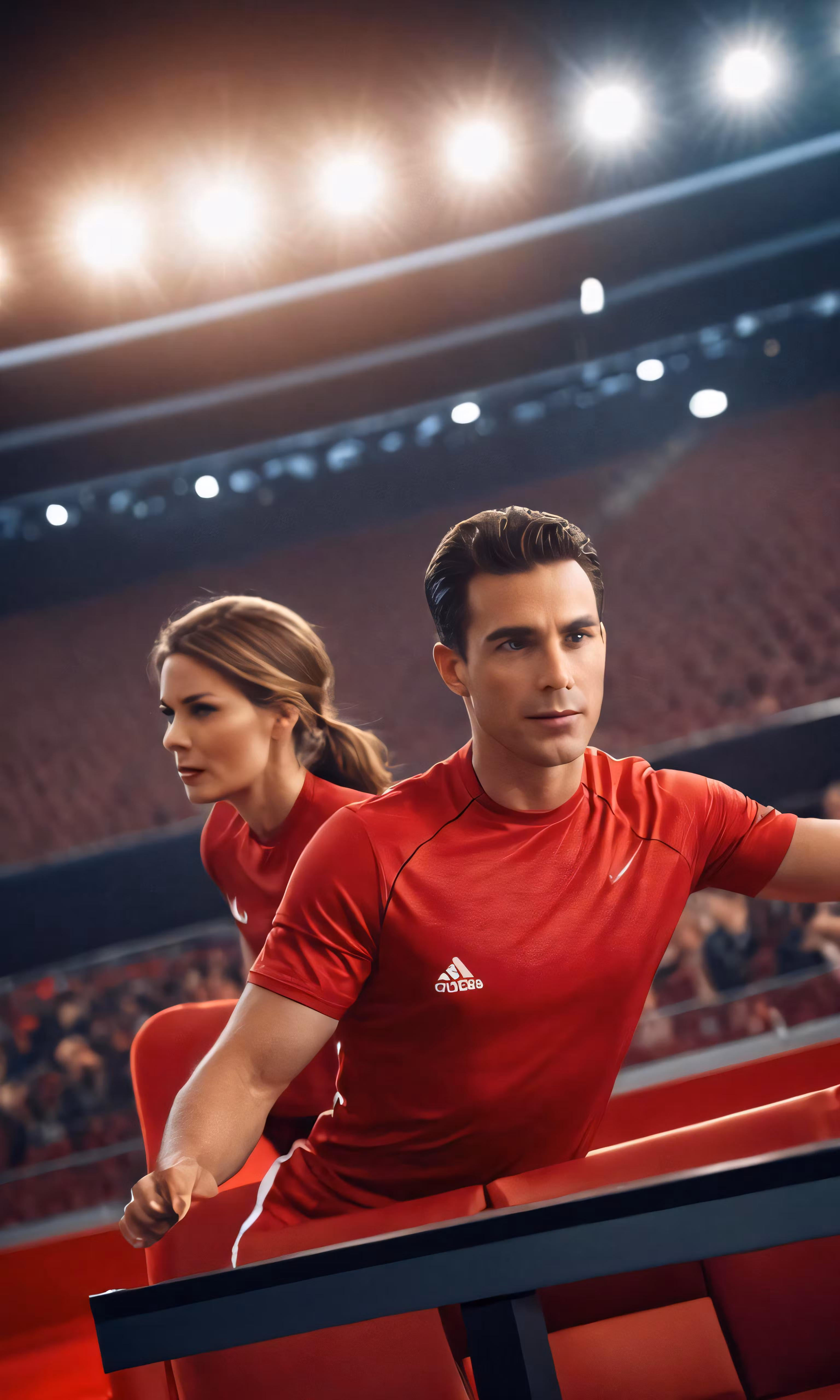 High resolution picture, free to use, two people wearing red shirts are in a theater
