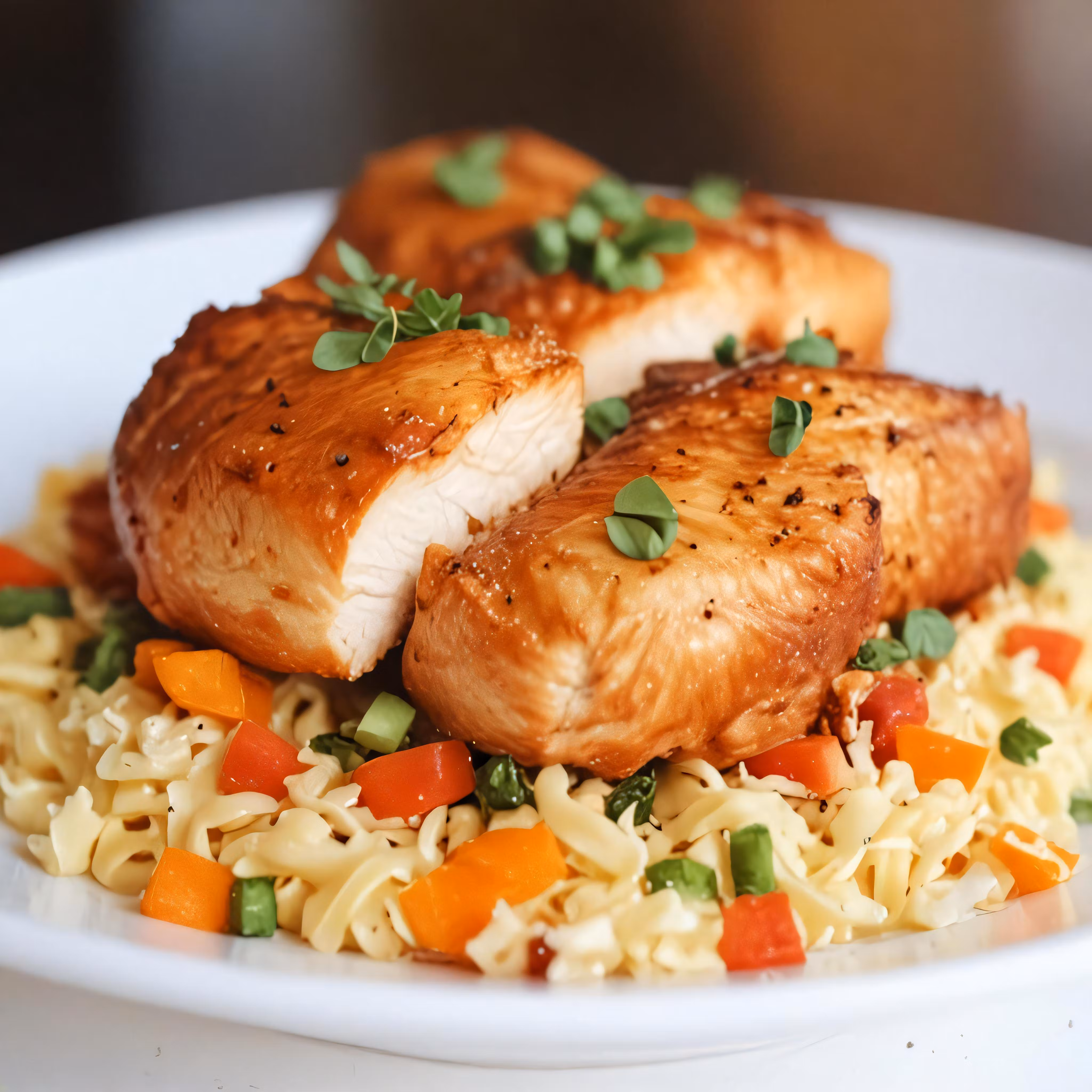 High resolution picture, free to use, two pieces of fish over a pile of rice with carrots