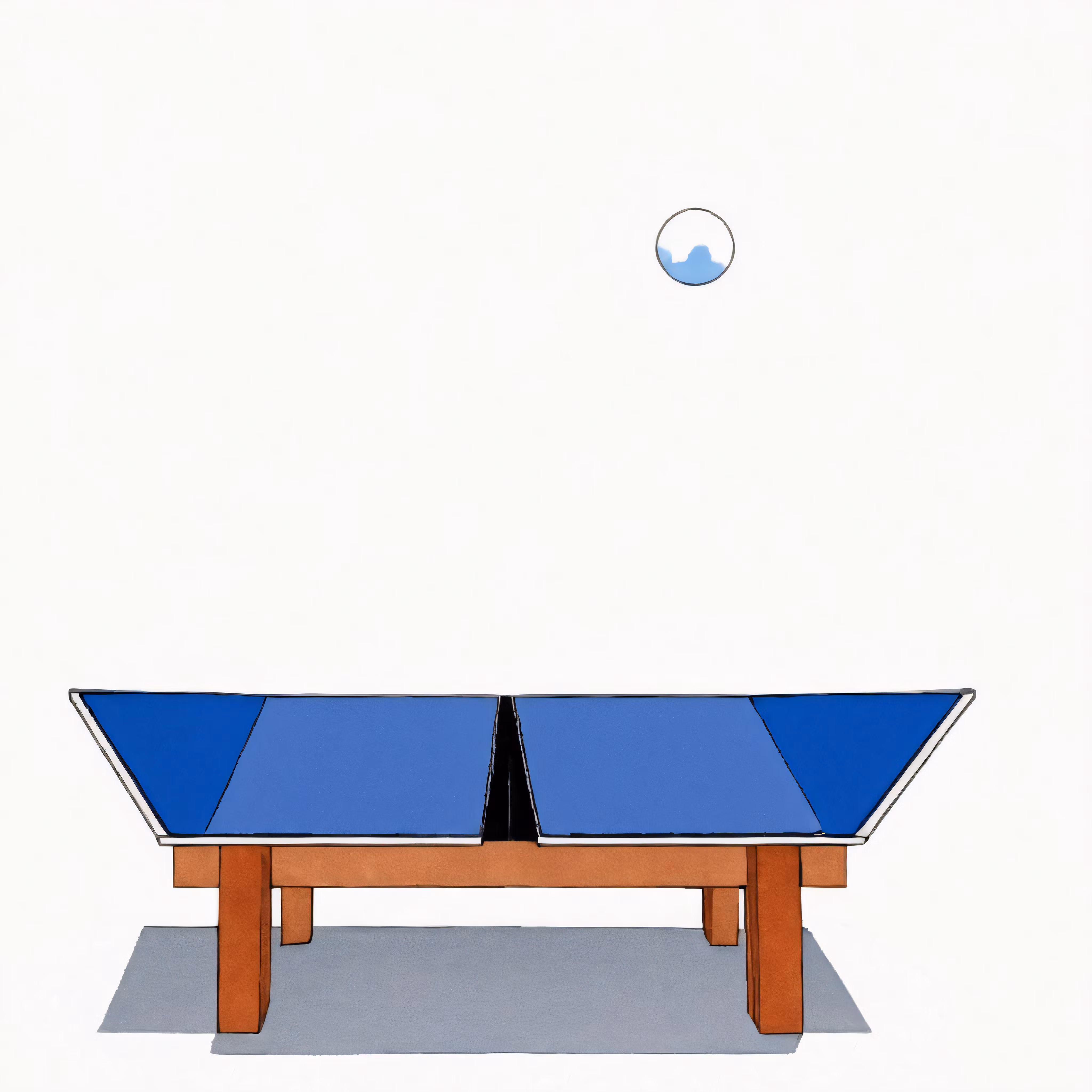 High resolution picture, free to use, two ping pong paddles in the shape of a triangle on a ping pong table