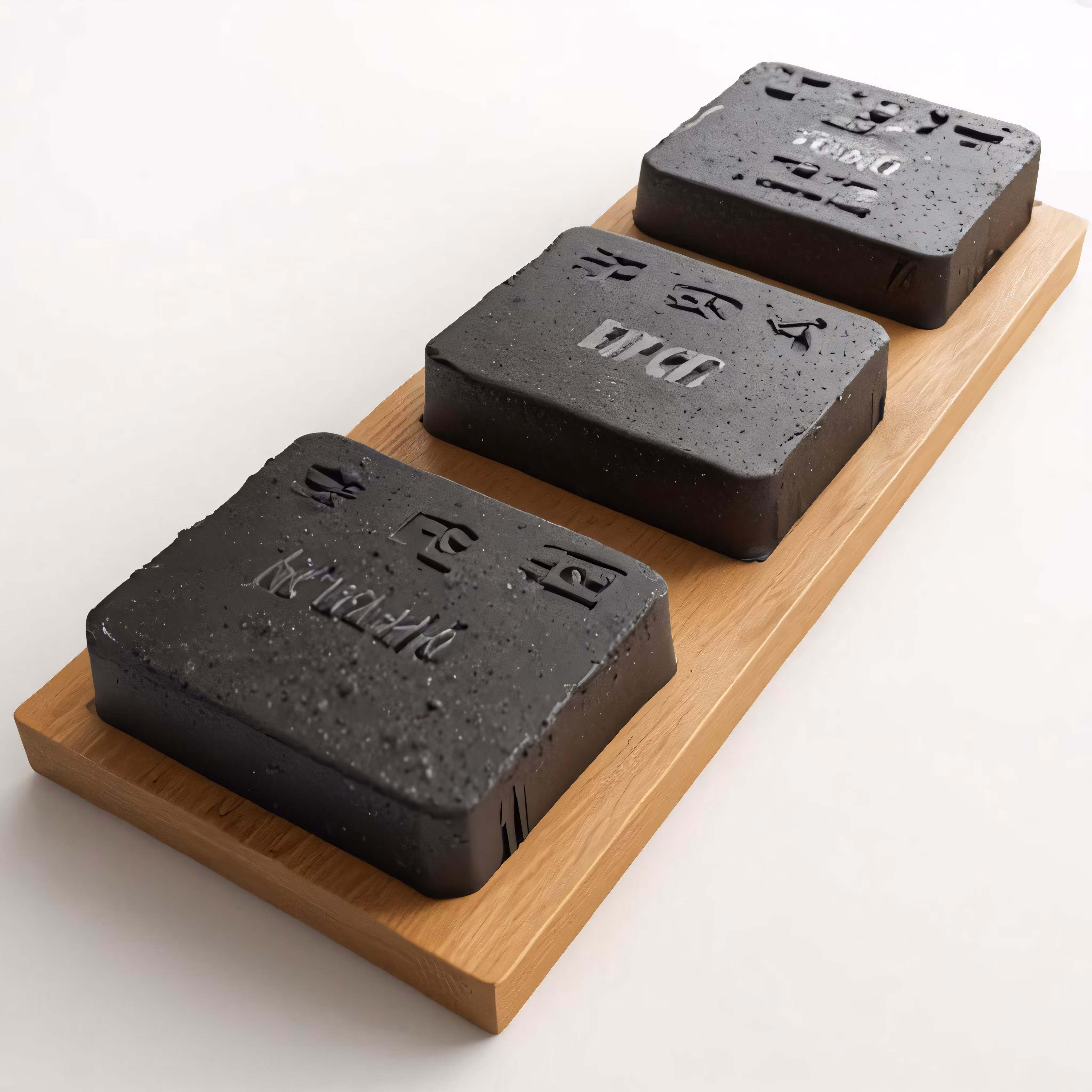 High resolution picture, free to use, two rectangular shaped black stones sitting on top of a wooden base