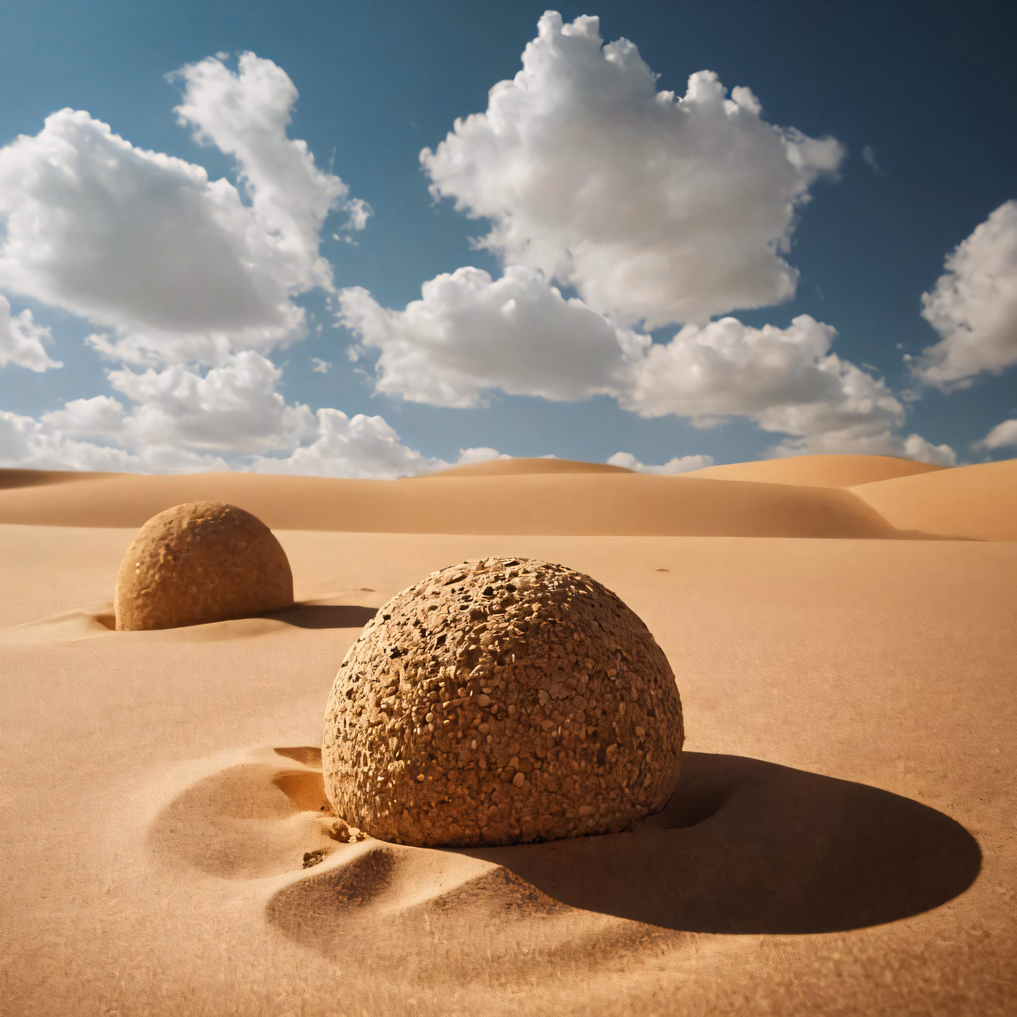 High resolution picture, free to use, two stones sit on the sand in the middle of the desert