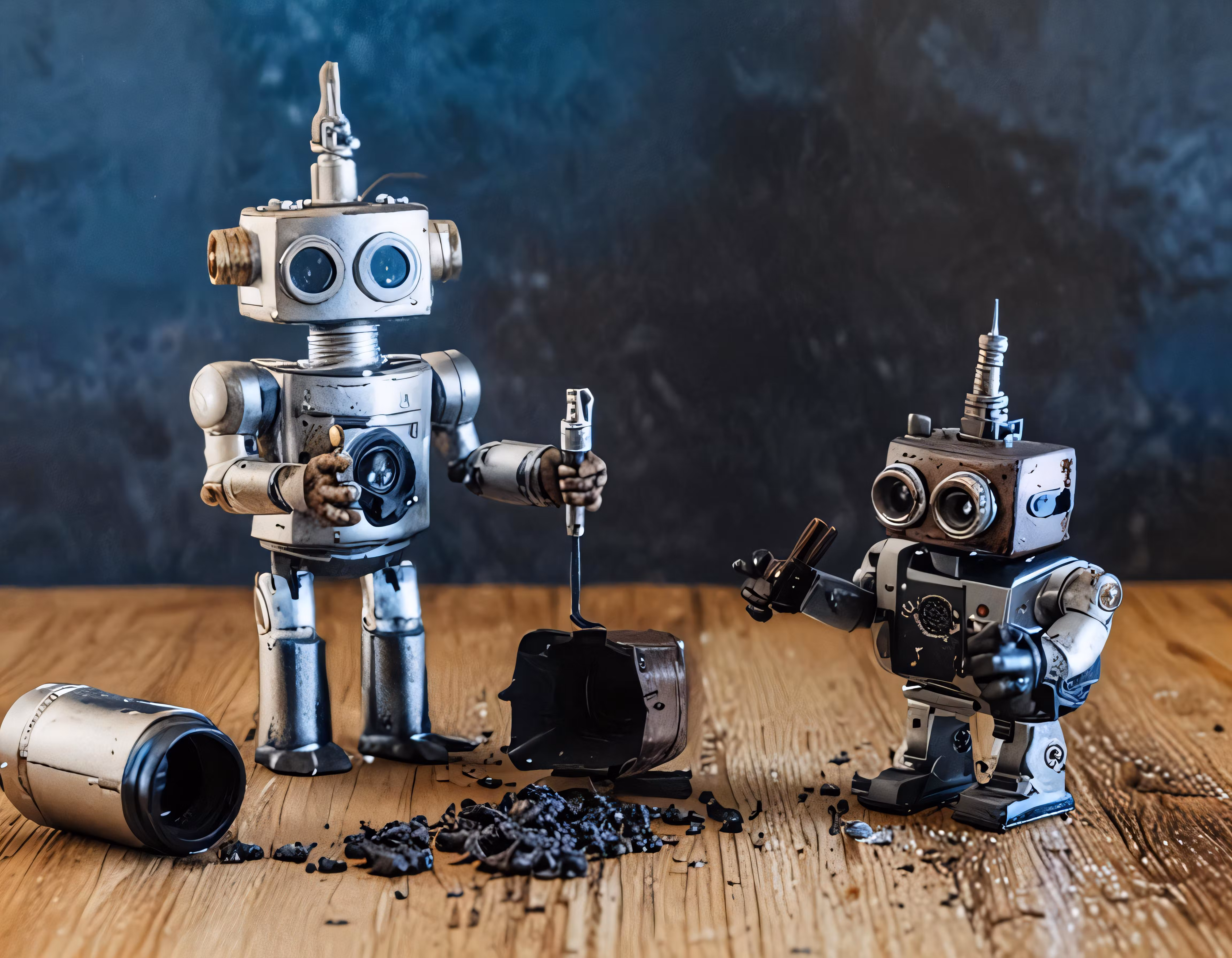 High resolution picture, free to use, two tin robots are holding a pair of tools