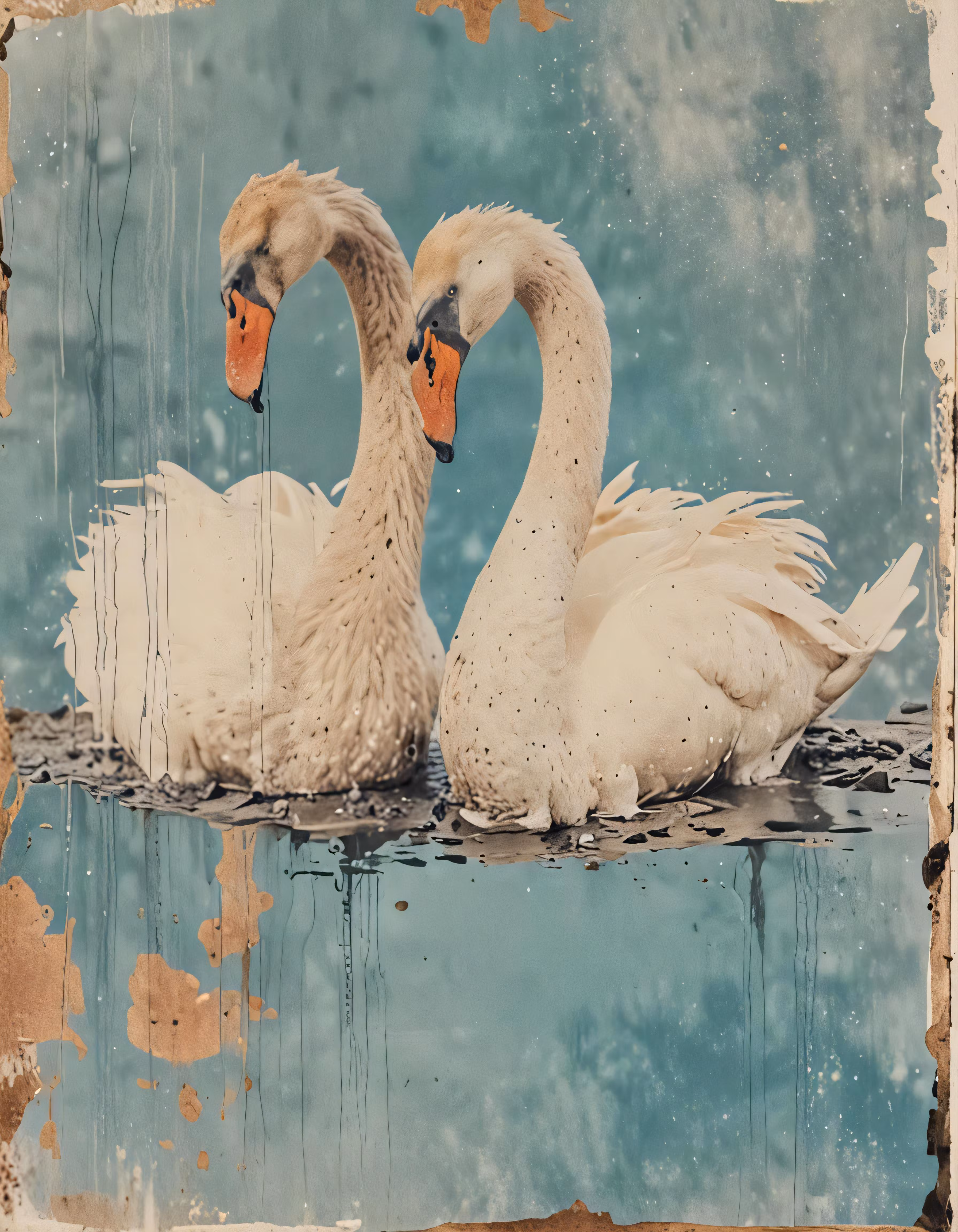 High resolution picture, free to use, two white swans sitting in the water with their necks crossed