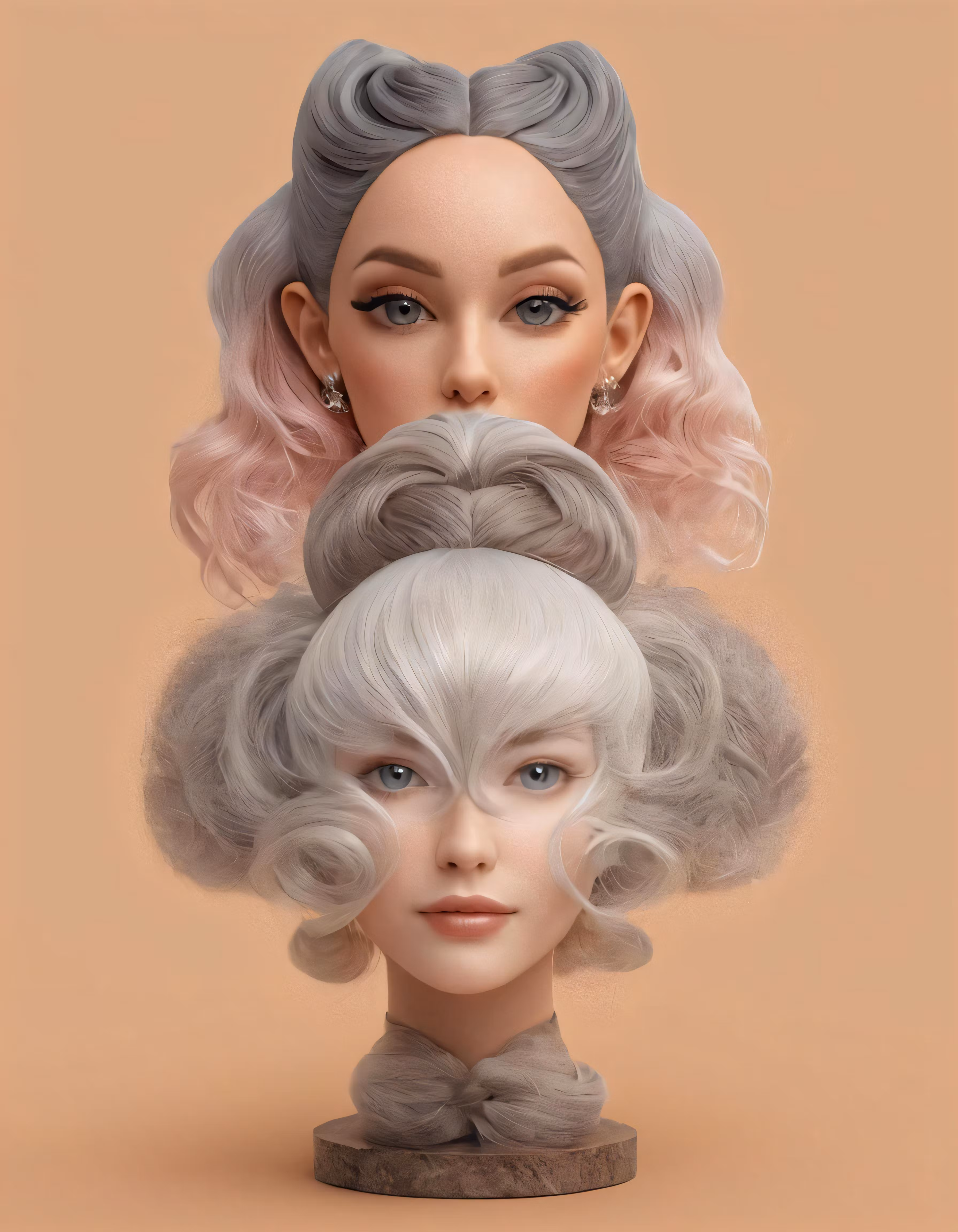 High resolution picture, free to use, two wigs that have been fashioned to look like woman with gray hair