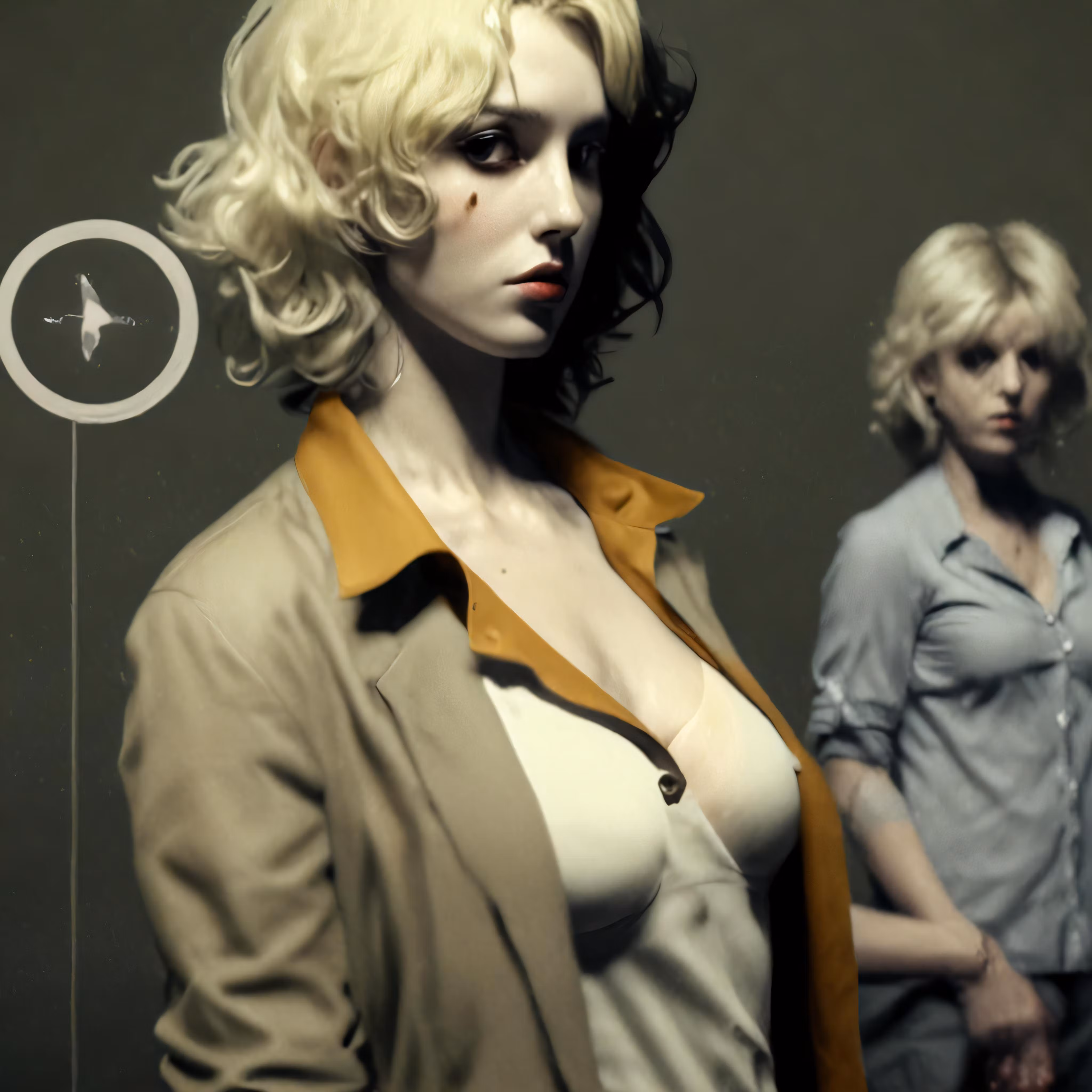 High resolution picture, free to use, two women standing next to each other in front of a wall