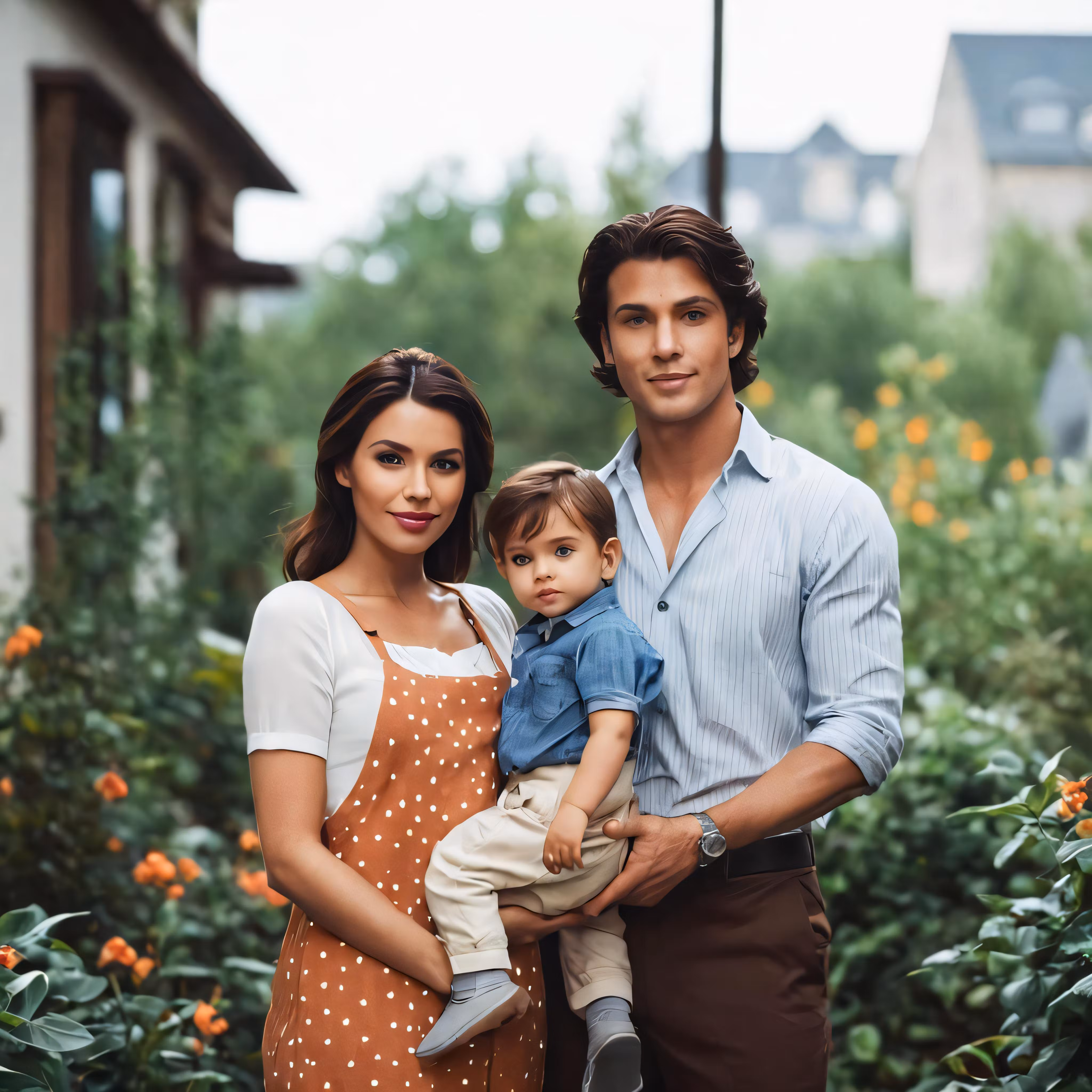 High resolution picture, free to use, two young men and a woman pose with their baby