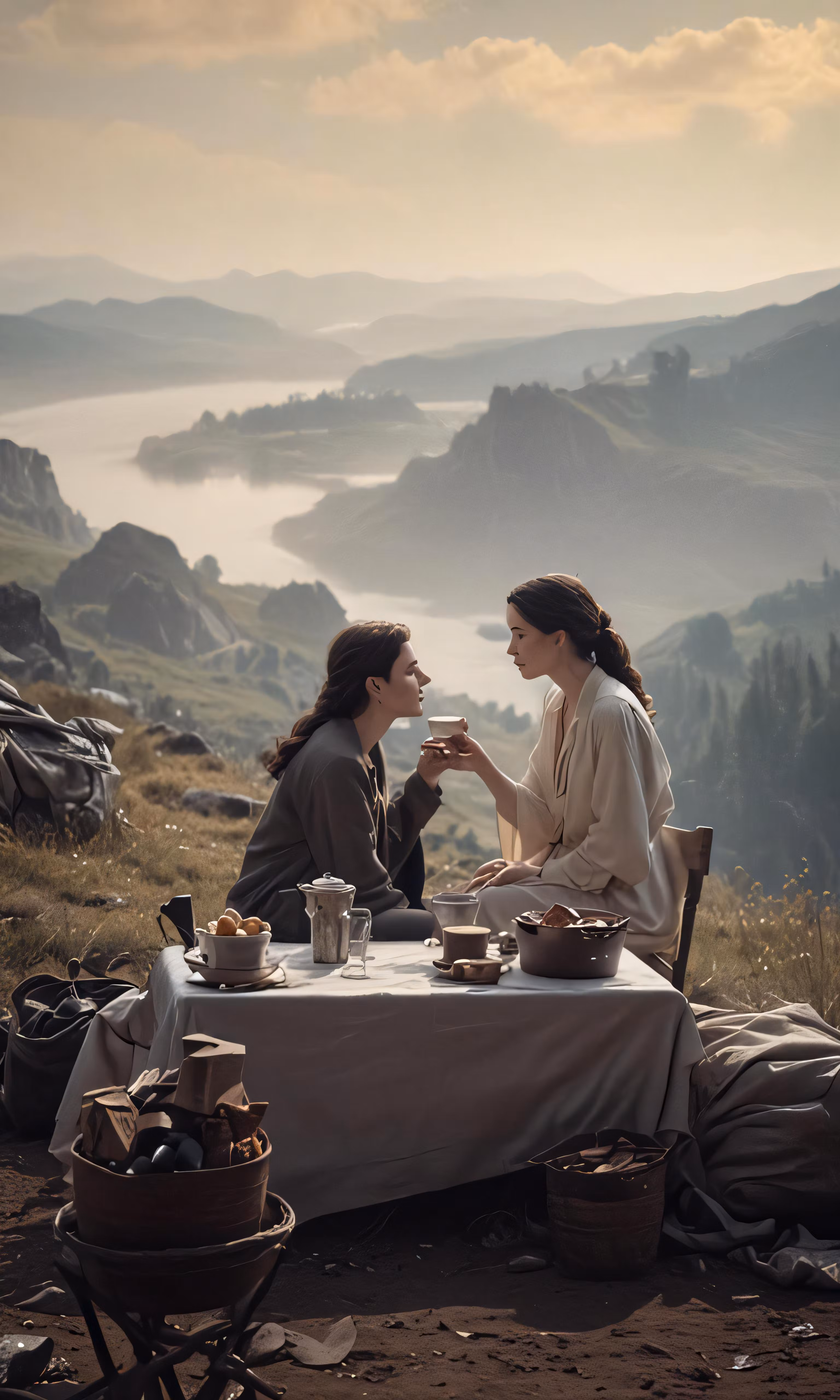 High resolution picture, free to use, two young women are sitting at an old   fashioned table and eating desserts