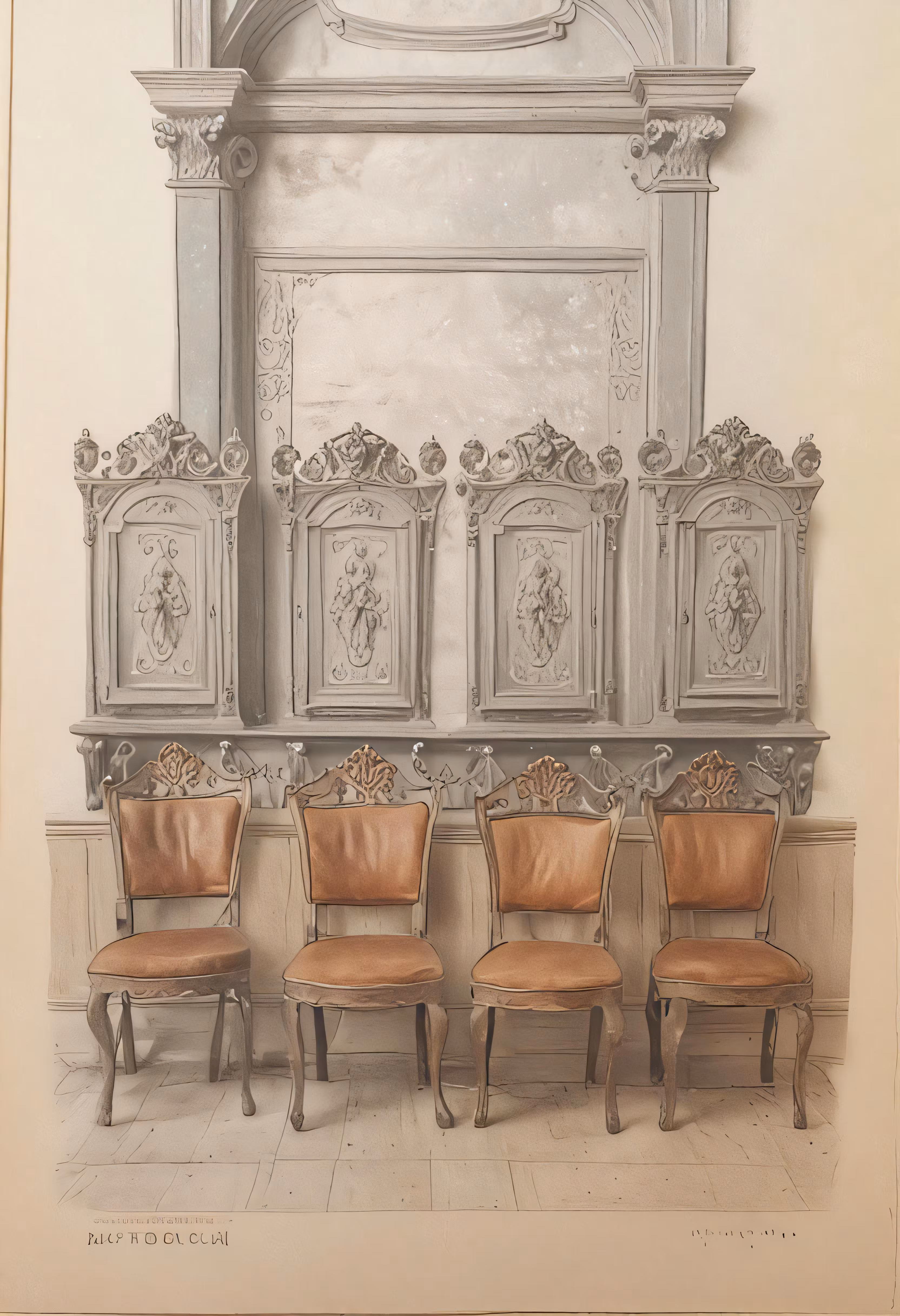 High resolution picture, free to use, vintage architectural drawing of a grand hall