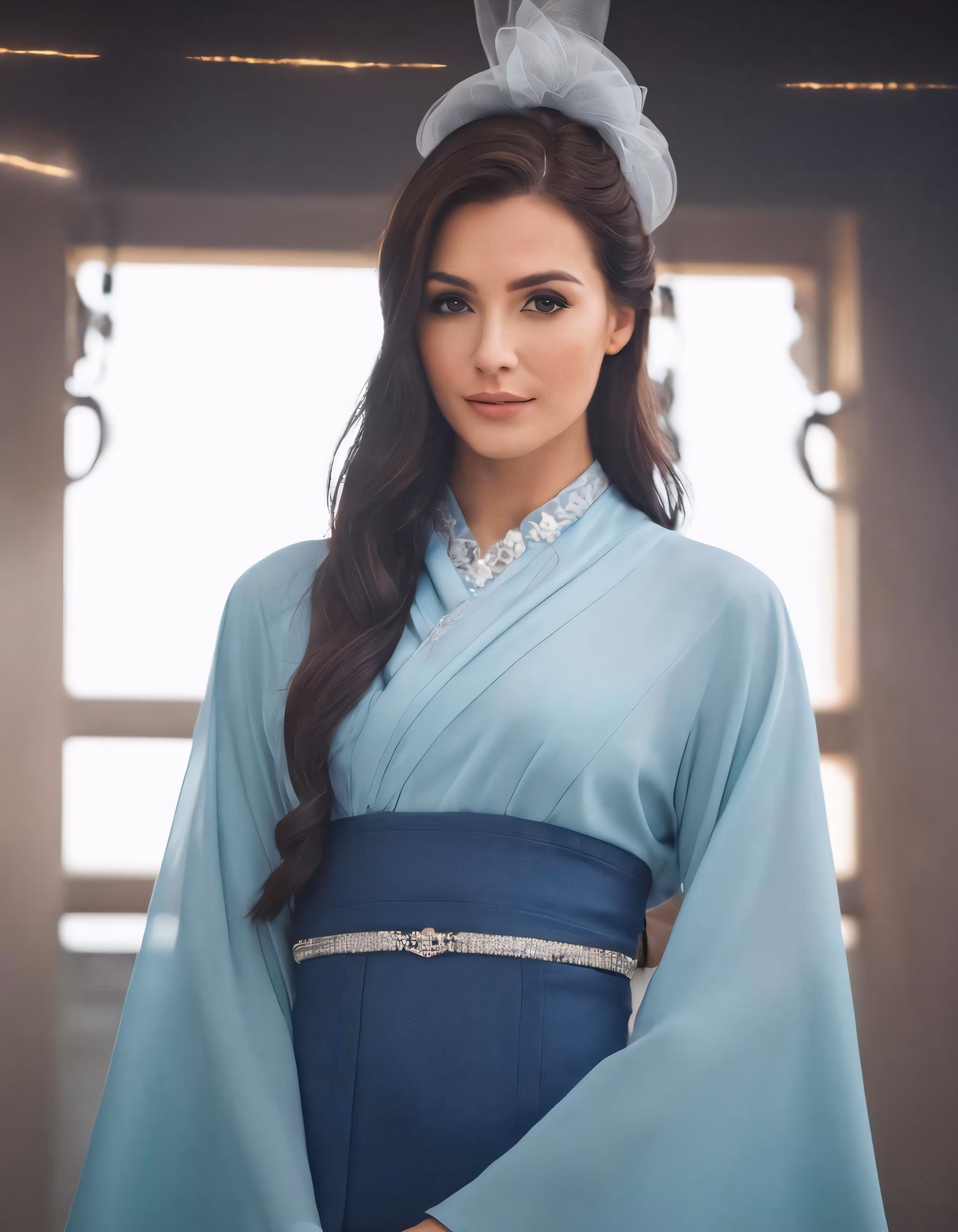 High resolution picture, free to use, woman in blue costume posing for the camera